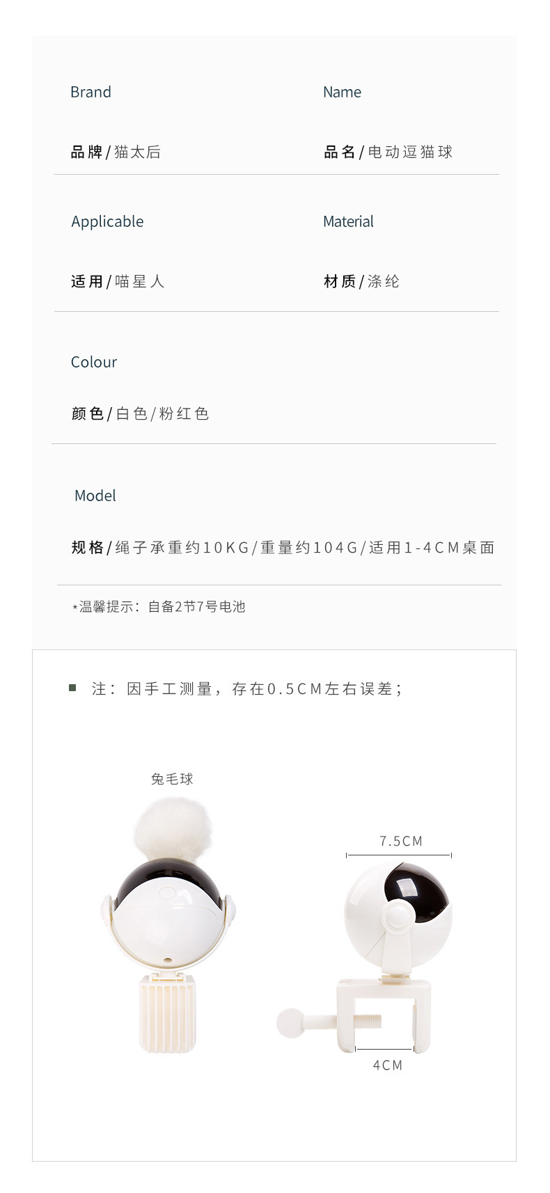 商品名称:YO-YO升降精灵逗猫球