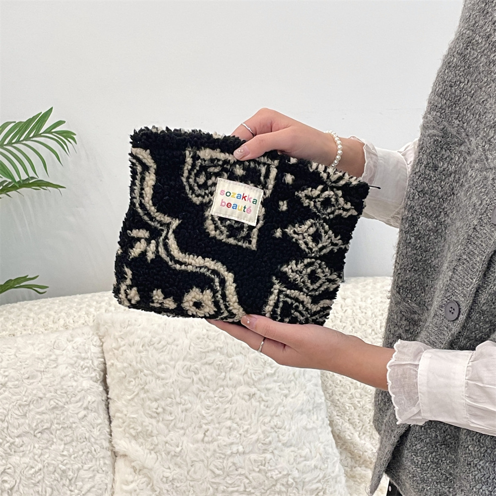 4123 인 스타일 겨울 봉제 화장품 가방 컬러 폴카 도트 대용량 여행 스킨 케어 화장품 보관 가방스토어 가기