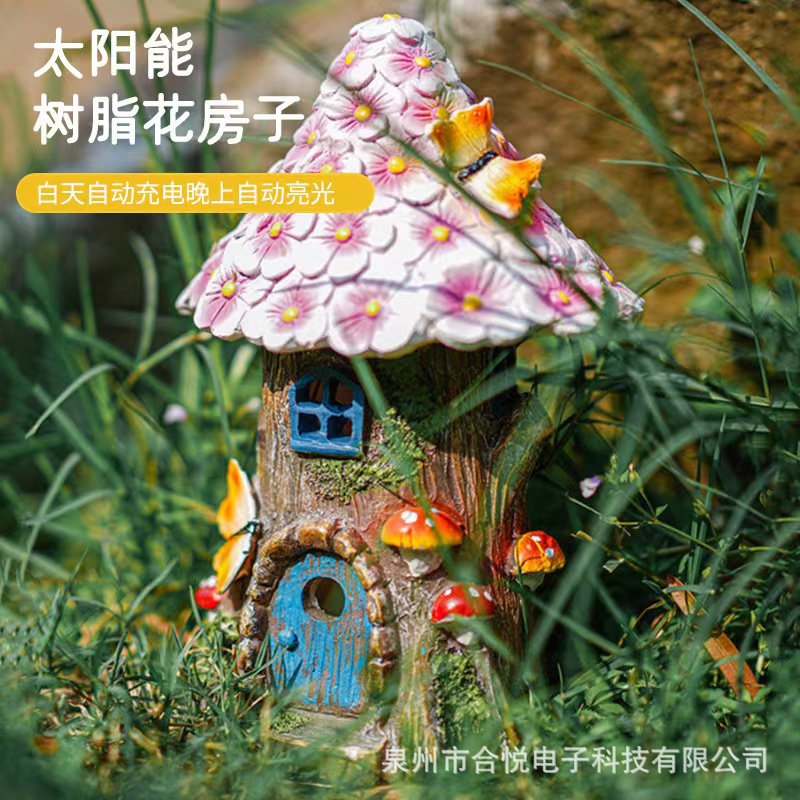 크로스보더 수지 조각상, 태양광 충전 발광 조명, 꽃집 정원 장식, 정원 공예품, 장식품, 선물