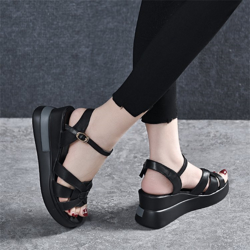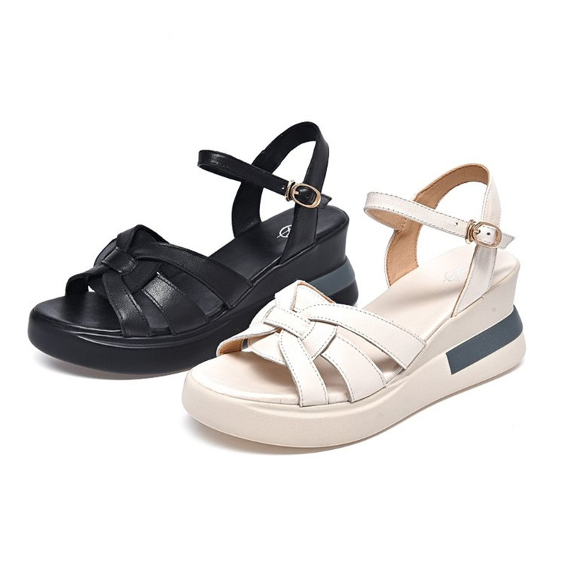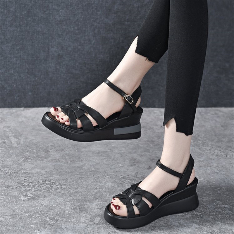 여성 웨지 신발 크로스 짠 버클 패션 머핀 샌들 숨겨진 힐 캐주얼 플러스 사이즈 대외 무역 샌들