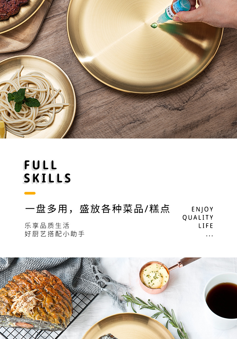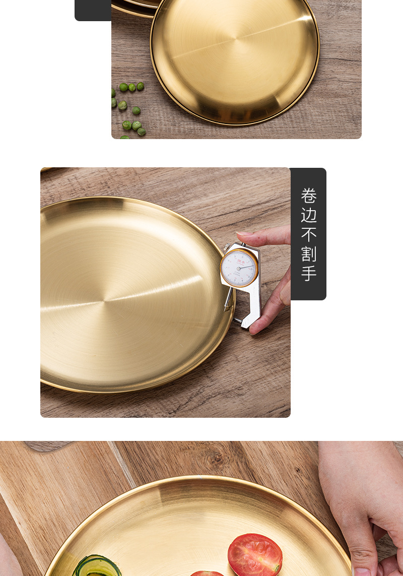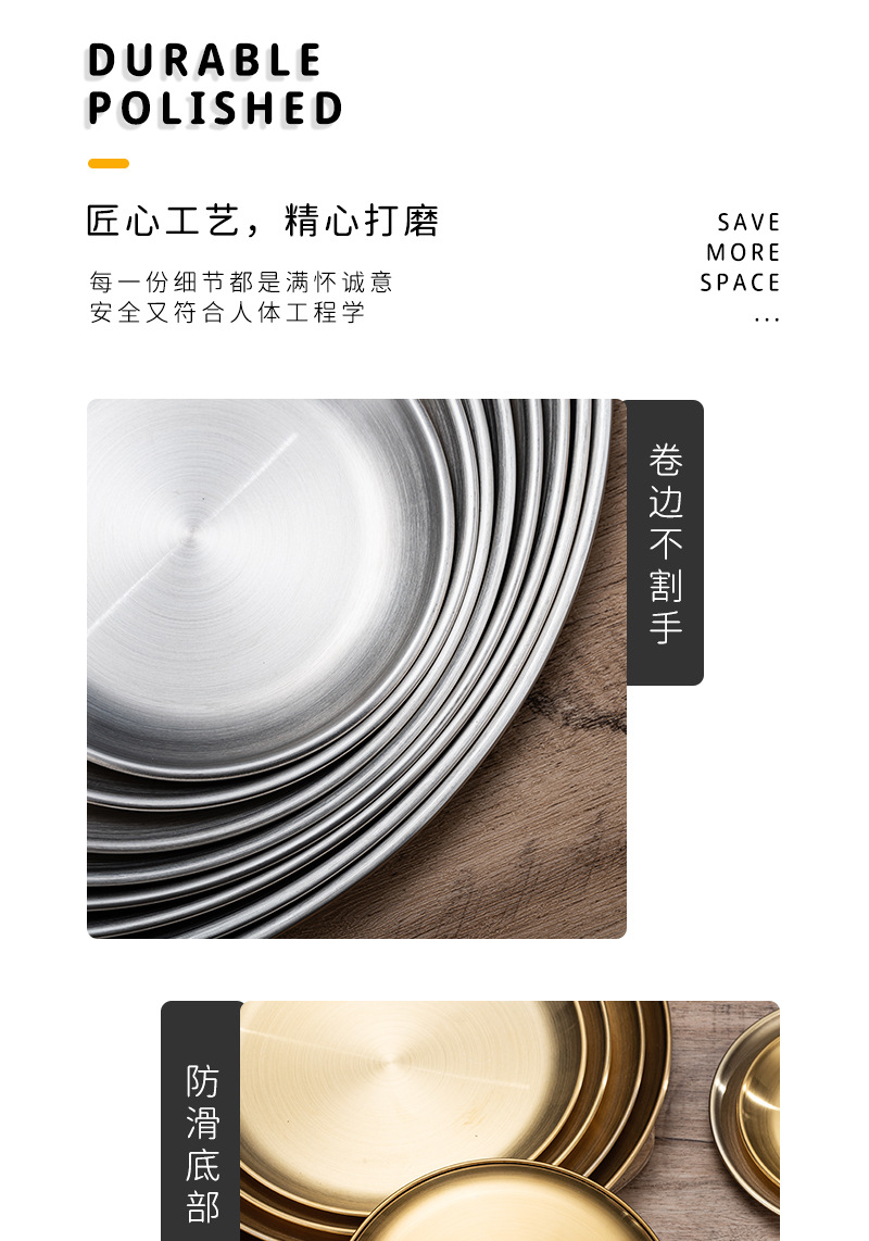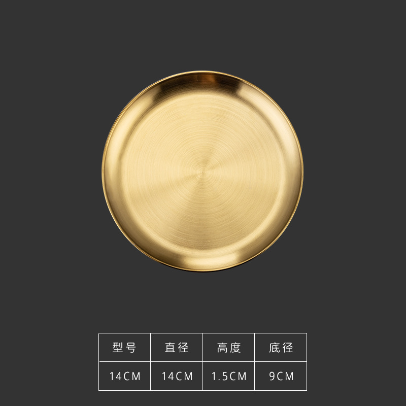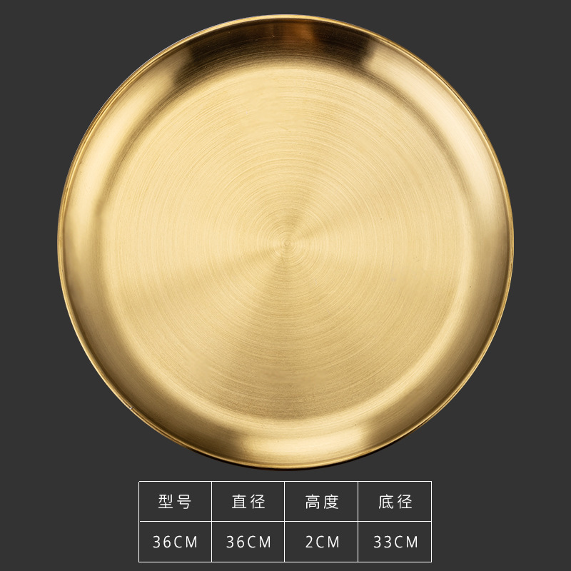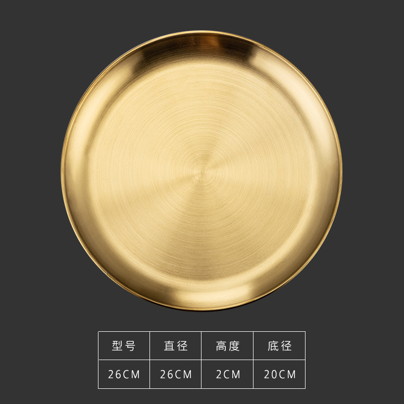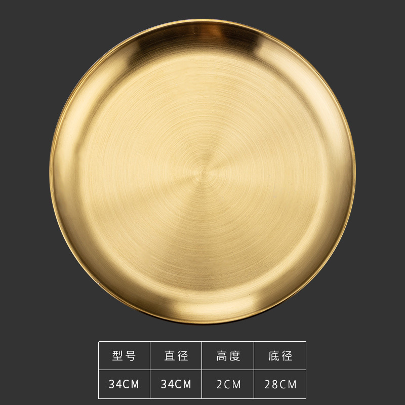 304 한국식 스테인리스 바베큐 접시 금색 원형 접시 바베큐 접시 뷔페 서양식 접시 과일 디저트 간식 접시
