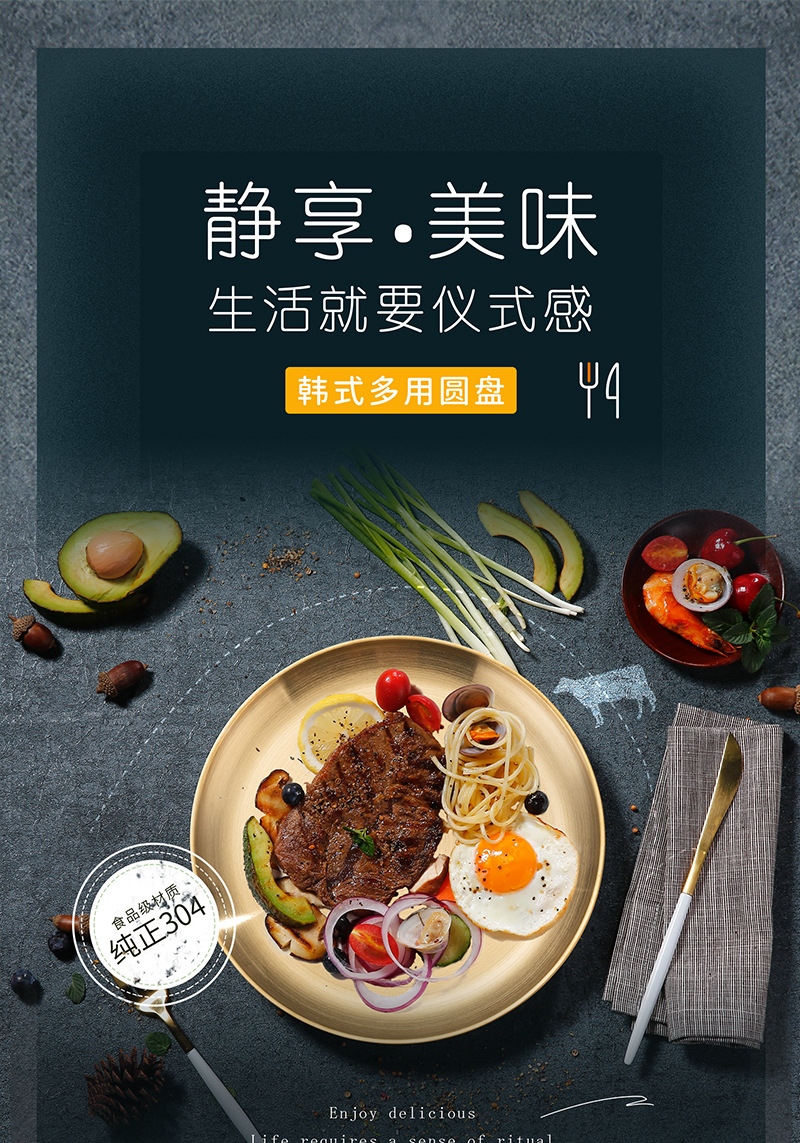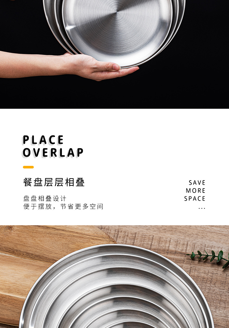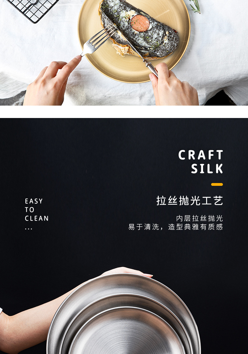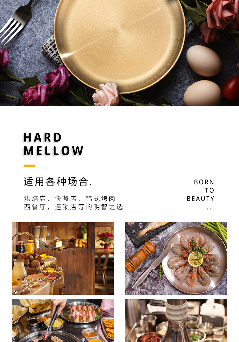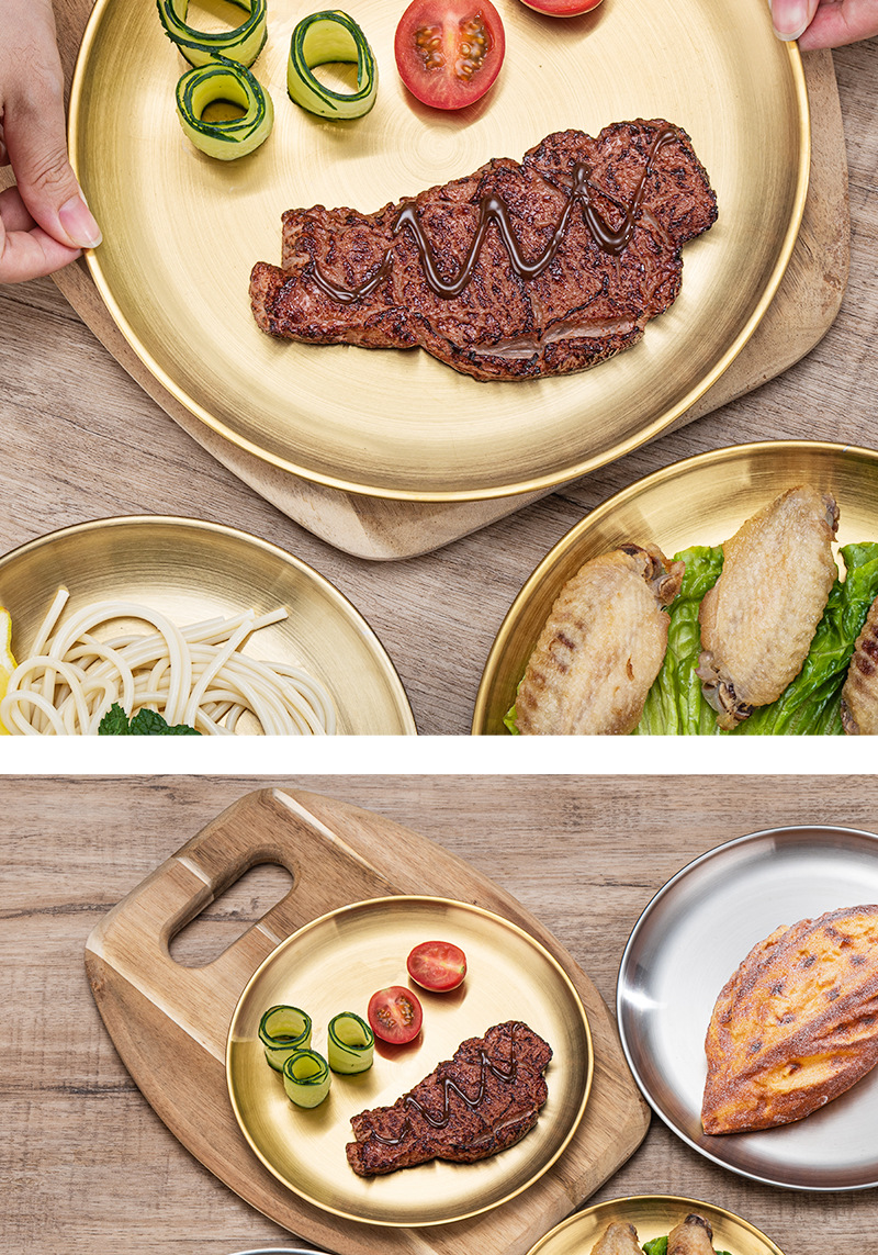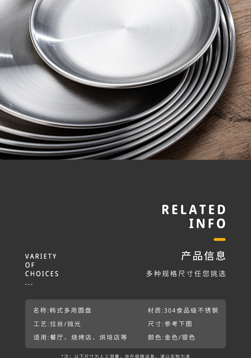 304 한국식 스테인리스 바베큐 접시 금색 원형 접시 바베큐 접시 뷔페 서양식 접시 과일 디저트 간식 접시