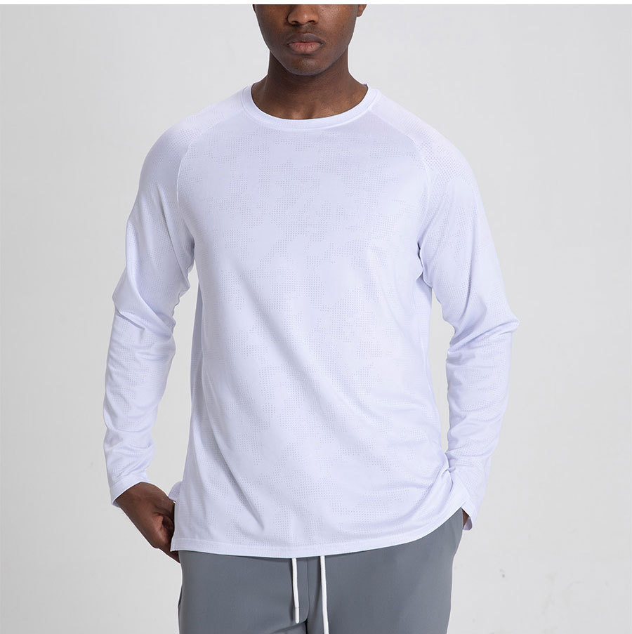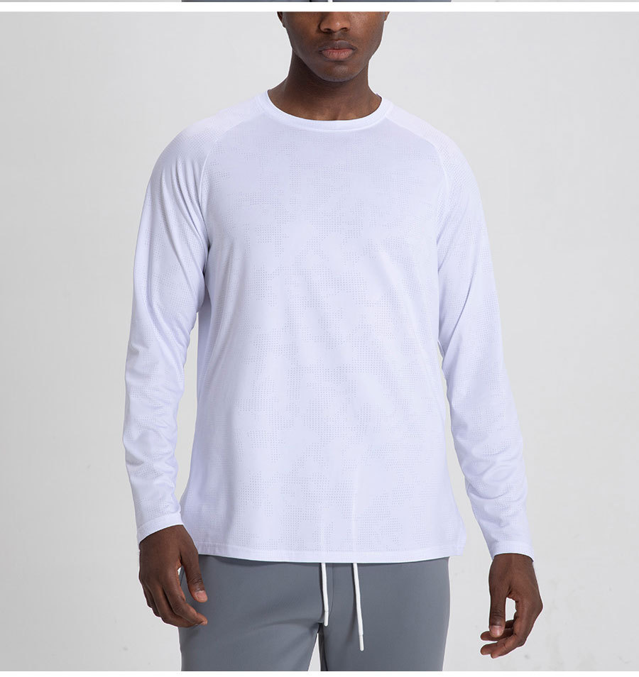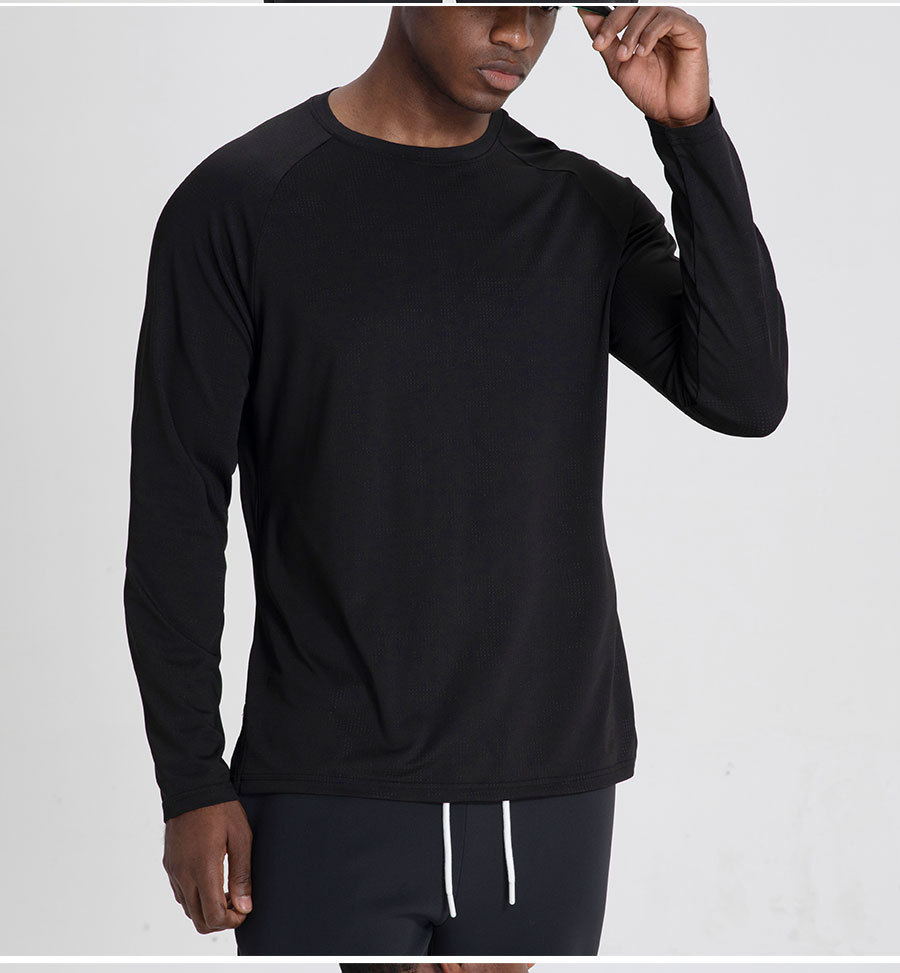 새로운 제품 실행 피트니스 스포츠 긴 소매 남자 최고 티셔츠 라운드 넥 느슨한 농구 훈련 옷 빠른 건조 긴 소매