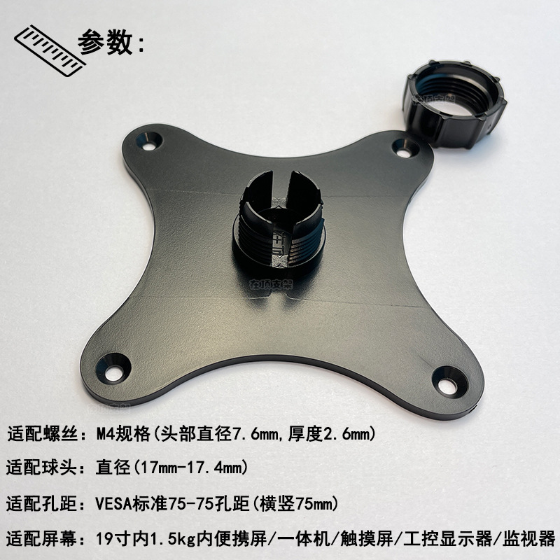 휴대용 디스플레이 브래킷 vesa75 구멍 거리 휴대 전화 17mm 볼 헤드 수평 및 수직 보조 스크린 산업용 터치 모니터