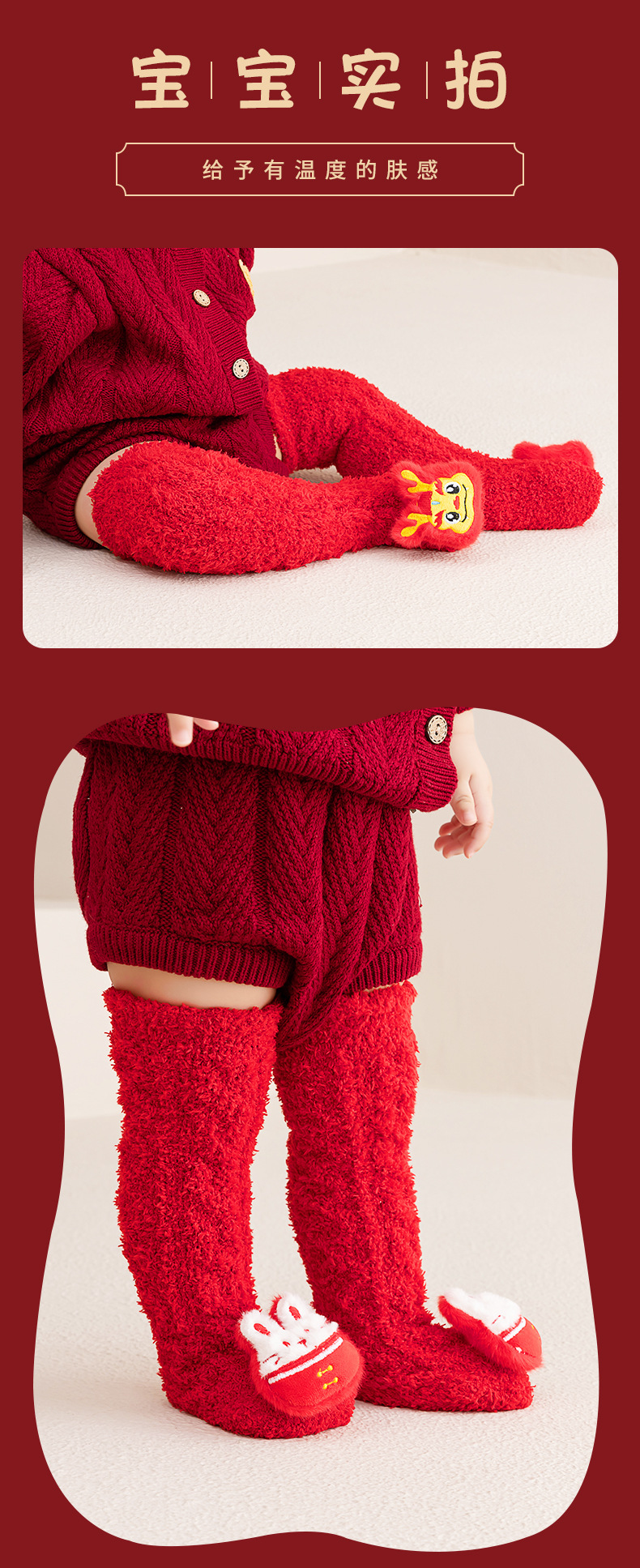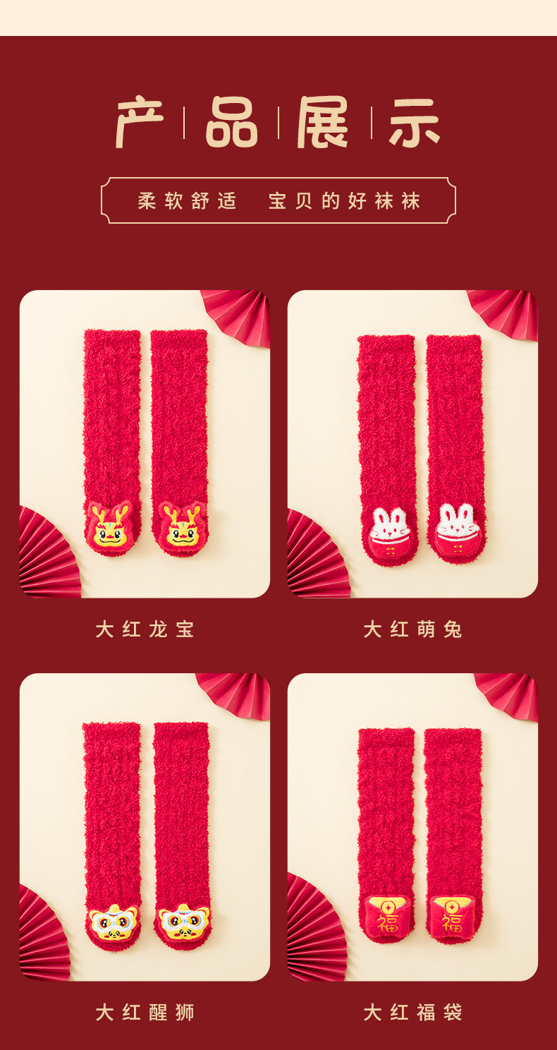 아기 새해 빨간 양말 신생아 긴 무릎 양말 산호 양털 두껍게 따뜻한 새해 양말 축제