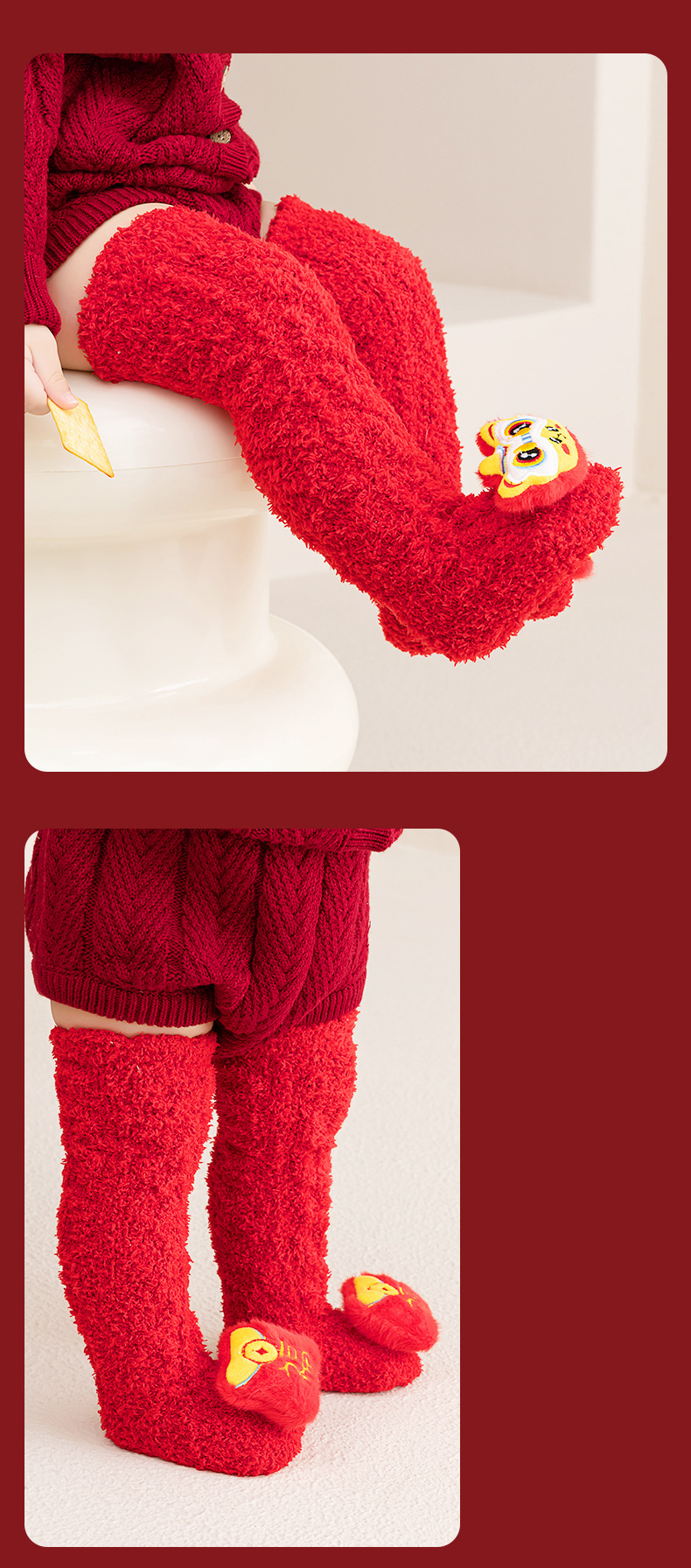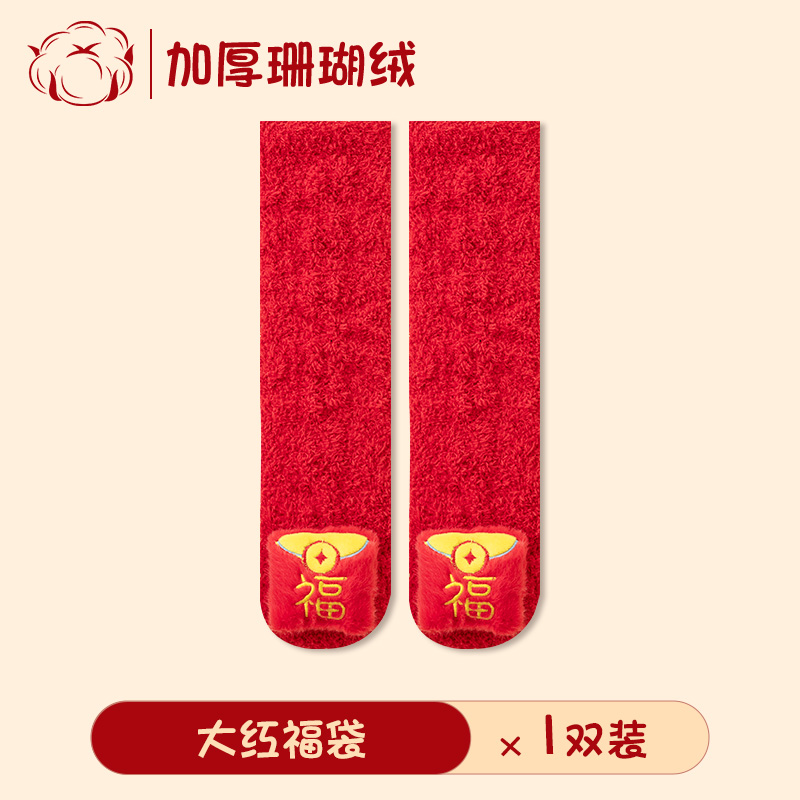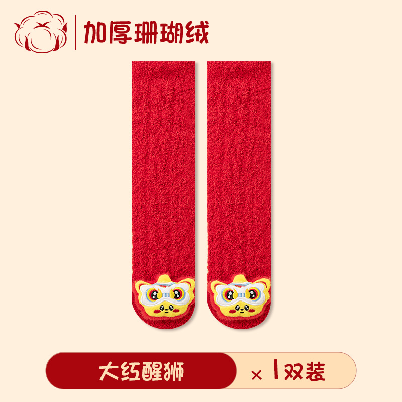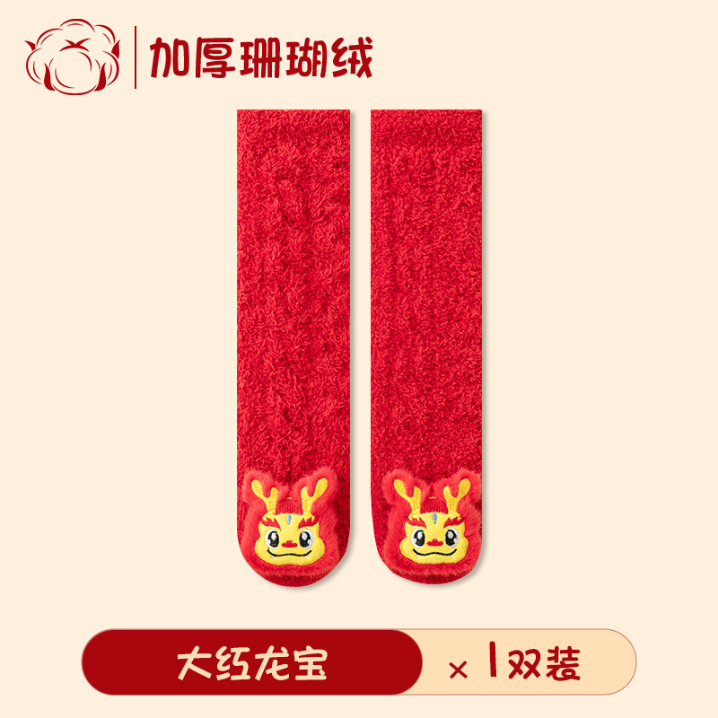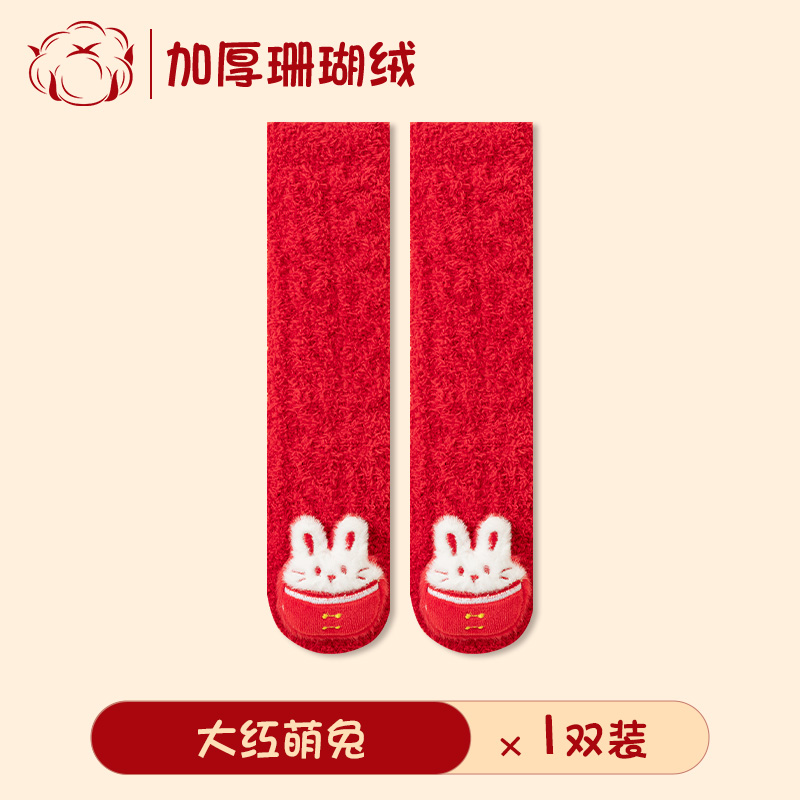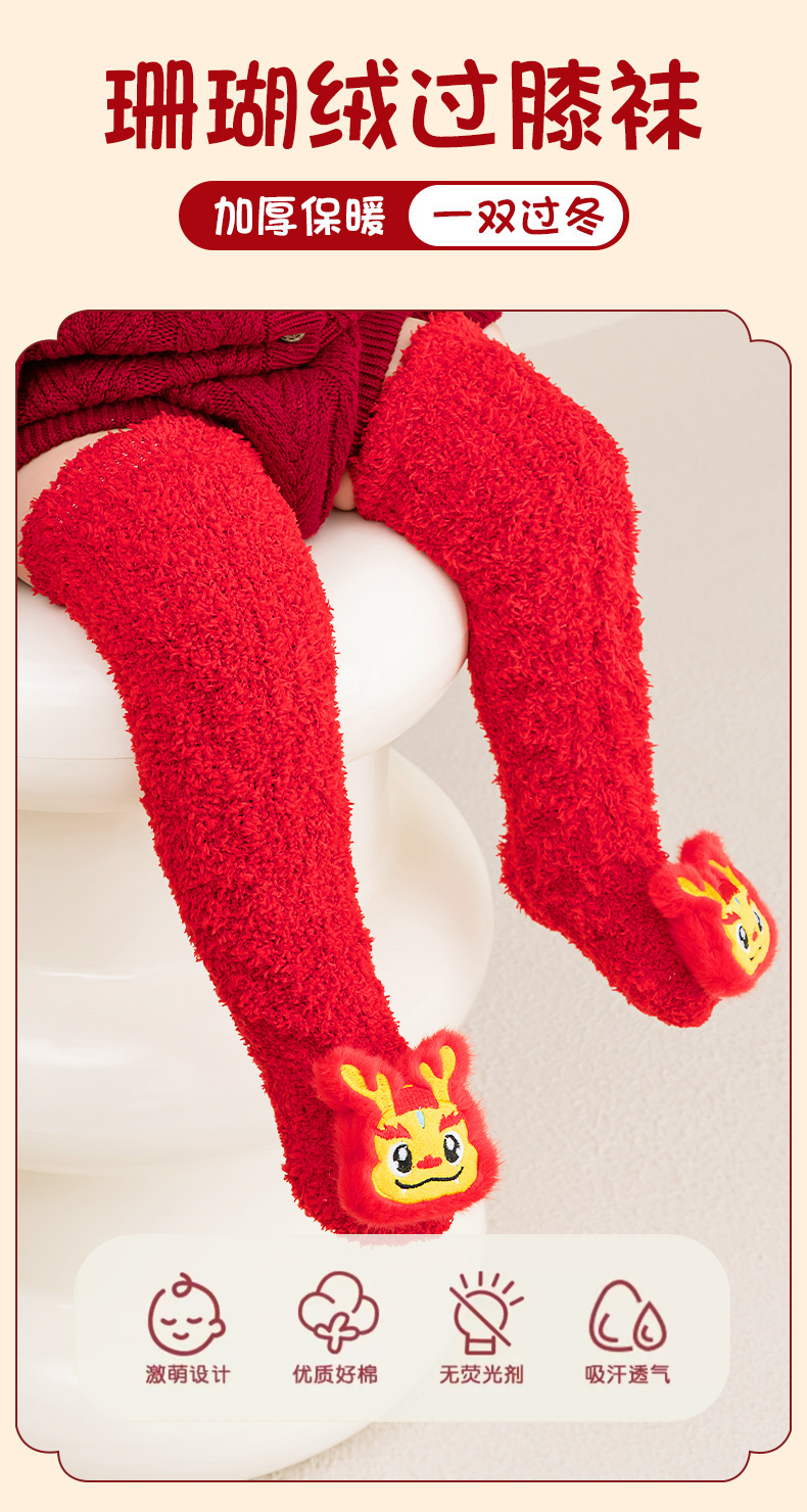 아기 새해 빨간 양말 신생아 긴 무릎 양말 산호 양털 두껍게 따뜻한 새해 양말 축제스토어 가기