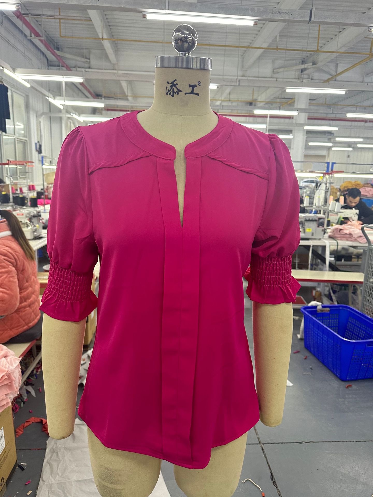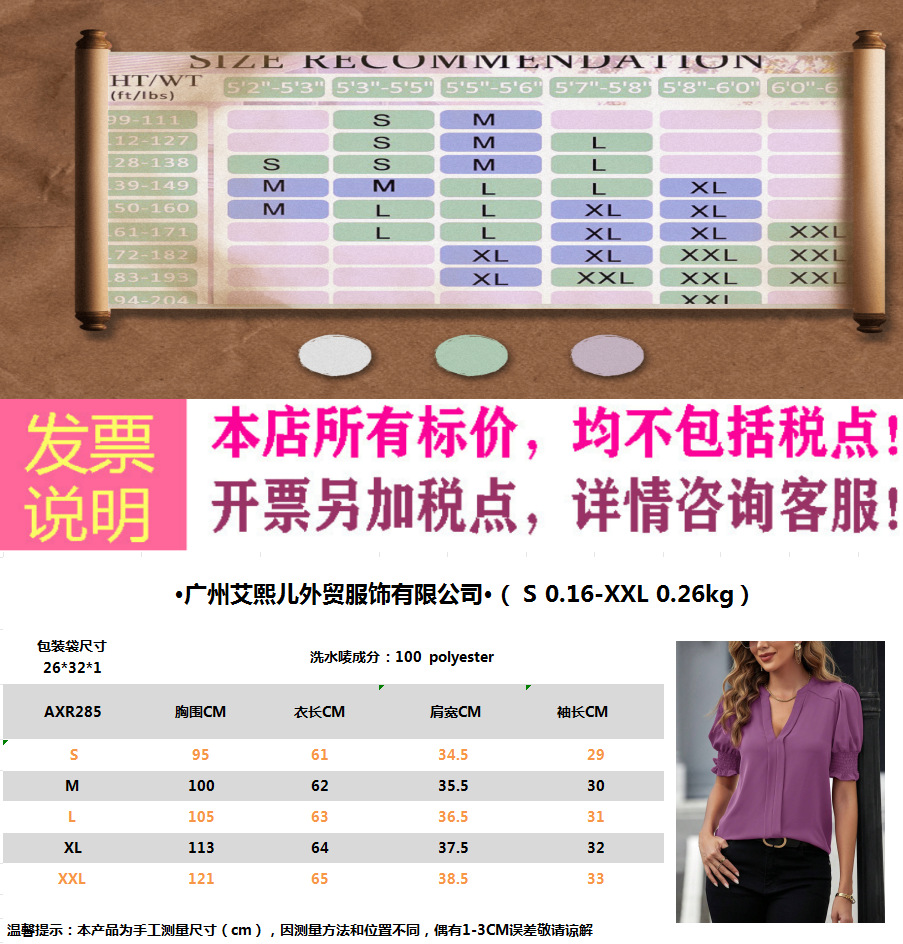 2026 유럽 및 미국 아마존 크로스보더 여성복 여름 신상 브이넥 우아한 퍼프 소매 단색 셔츠 여성 상의스토어 가기