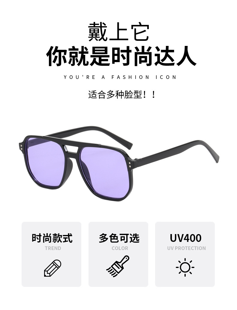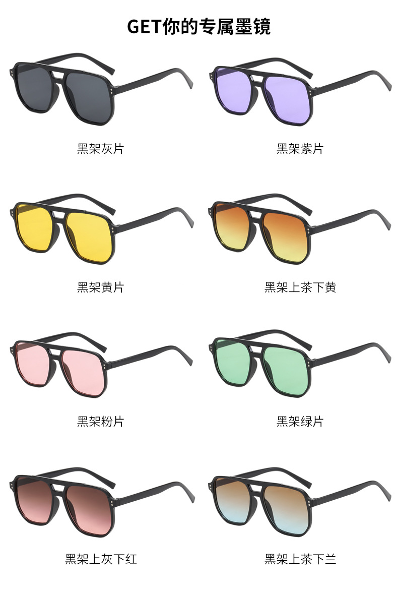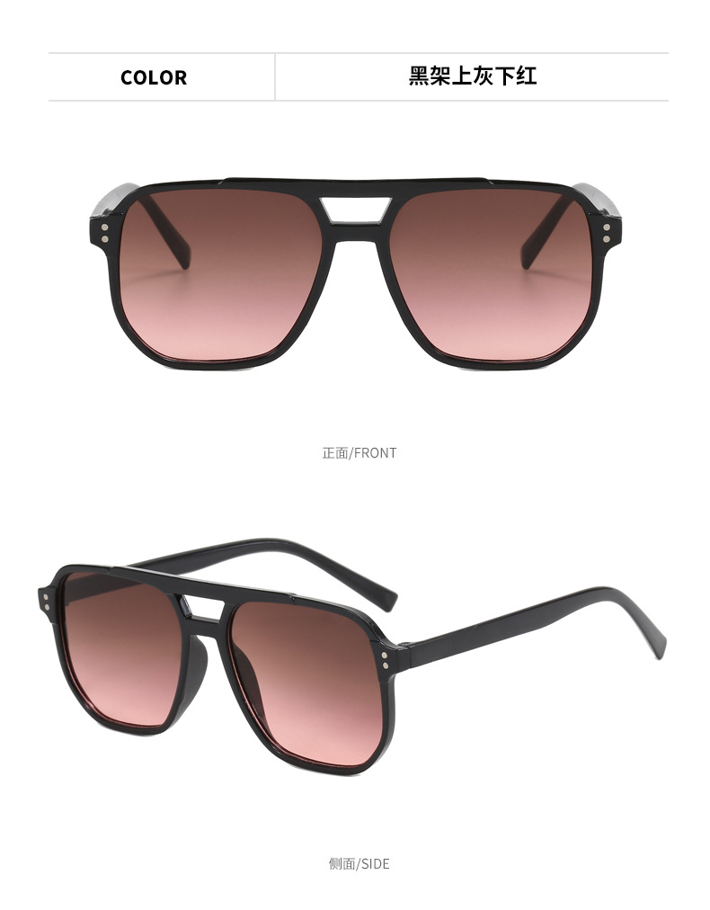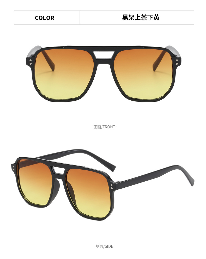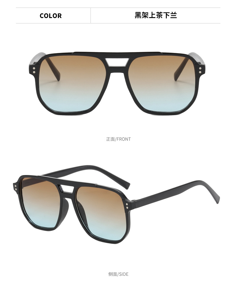 국경 패션 더블 빔 선글라스 도매 남성과 여성의 동일한 그라디언트 컬러 대형 프레임 슬리밍 태양 보호 선글라스 재고 있음