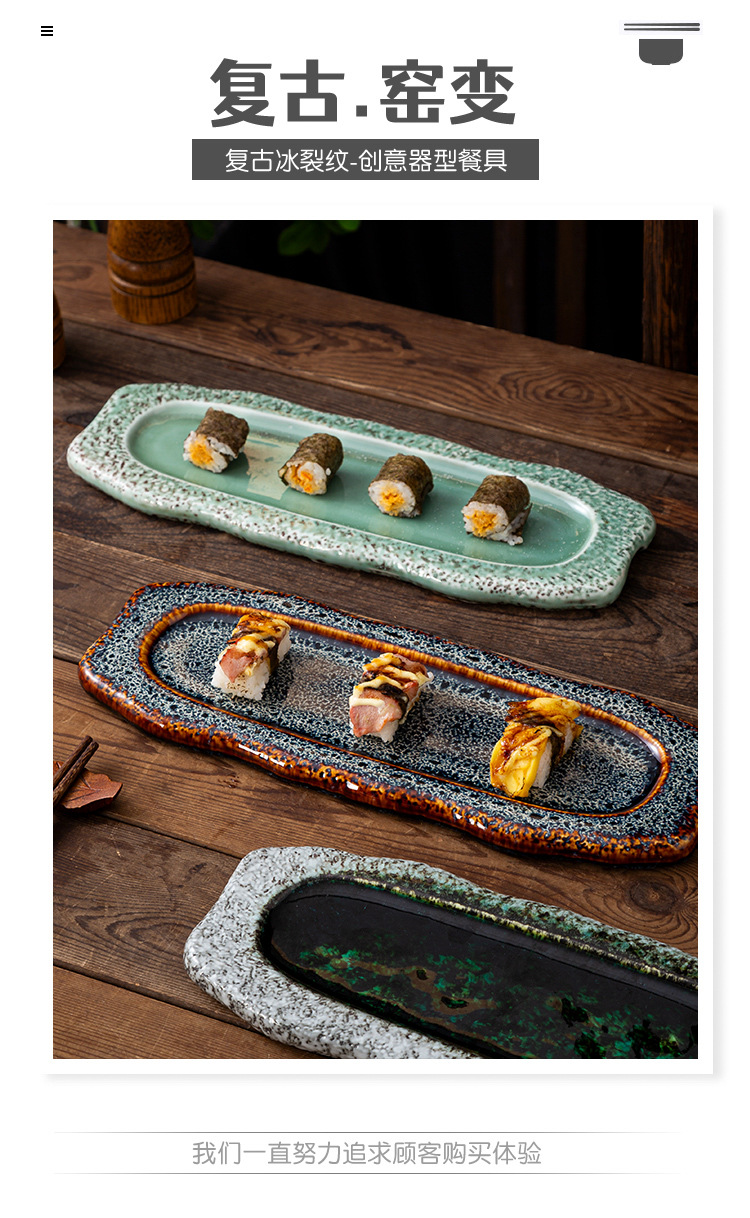가마 변화 창조적 인 성격 복고풍 호텔 레스토랑 홈 초밥 접시 긴 접시 간식 접시 직사각형 접시 회