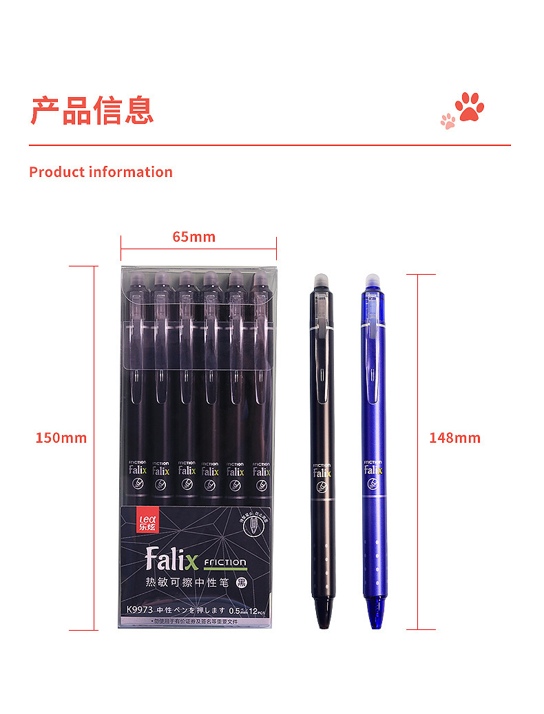 뜨거운 지울 수있는 젤 펜 0.5mm 초등학교 간단한 문질러 지우기 젤 펜 블루 블랙 도매