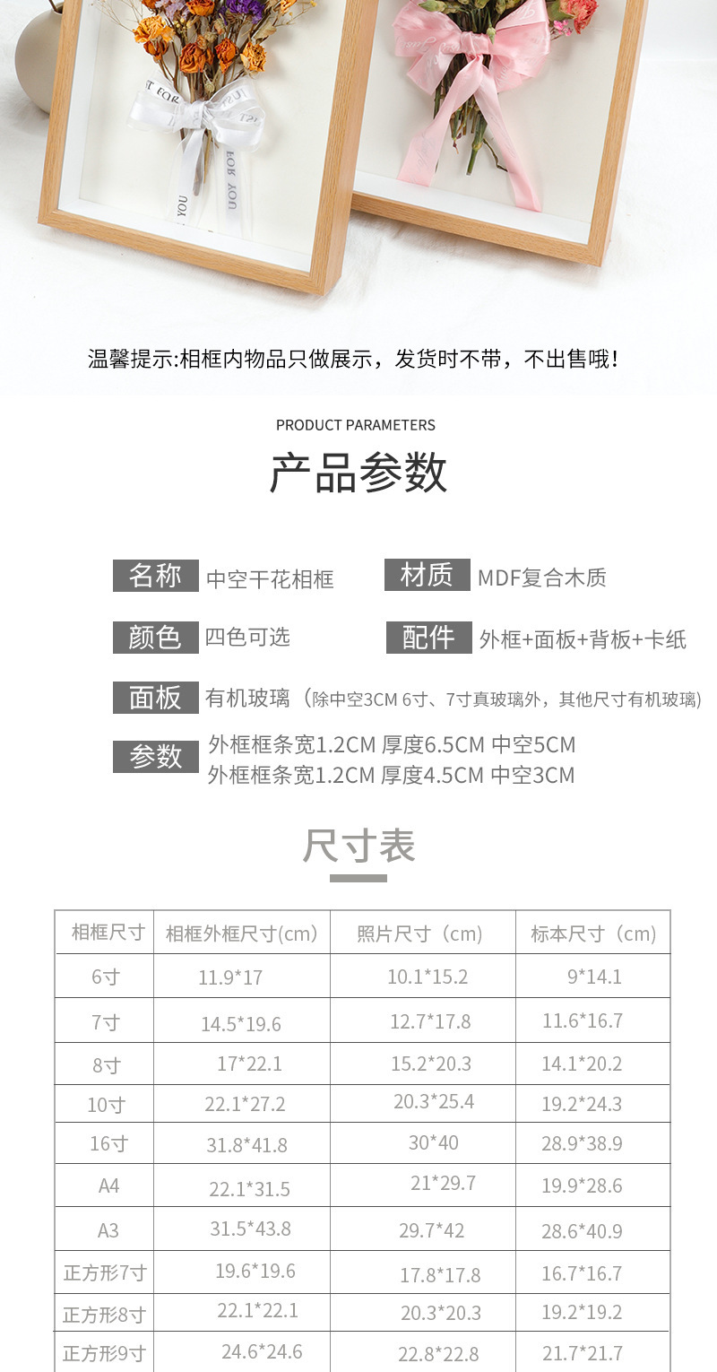 입체 중공 3cm 사진 프레임 정사각형 12inch A4A3 수제 DIY 드라이플라워 나비 표본 블라인드 박스 보관 액자