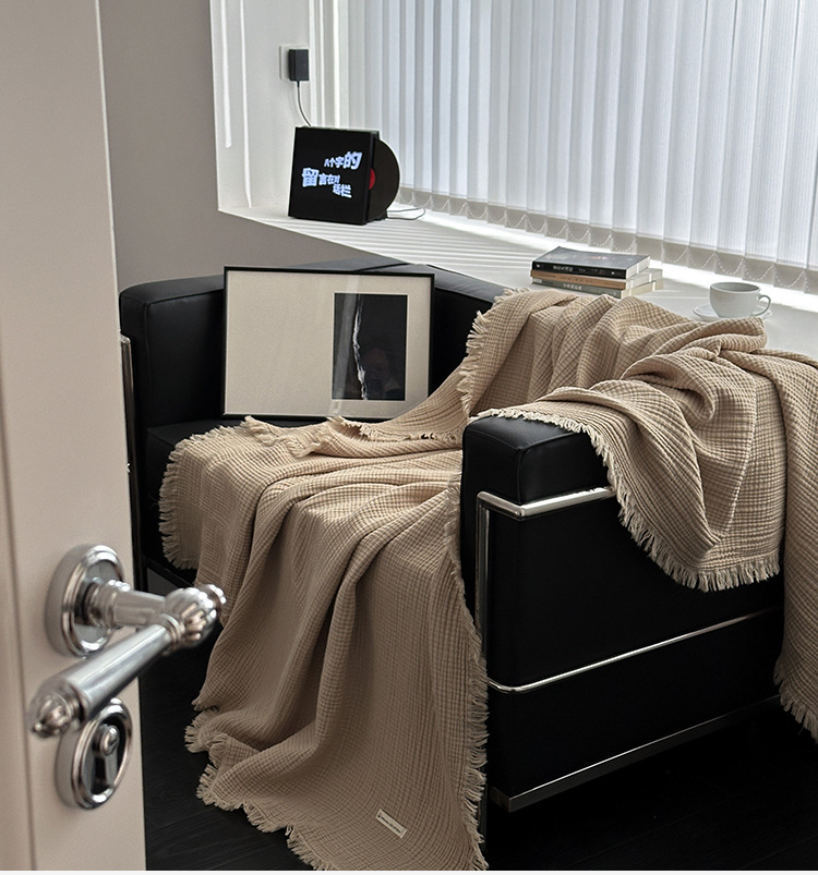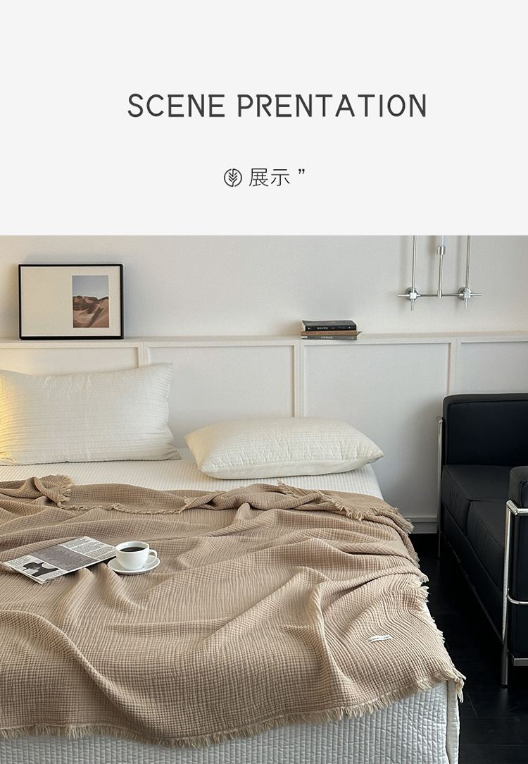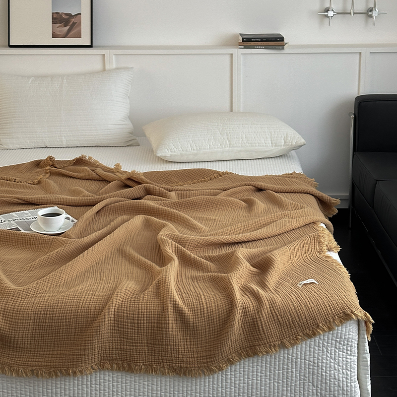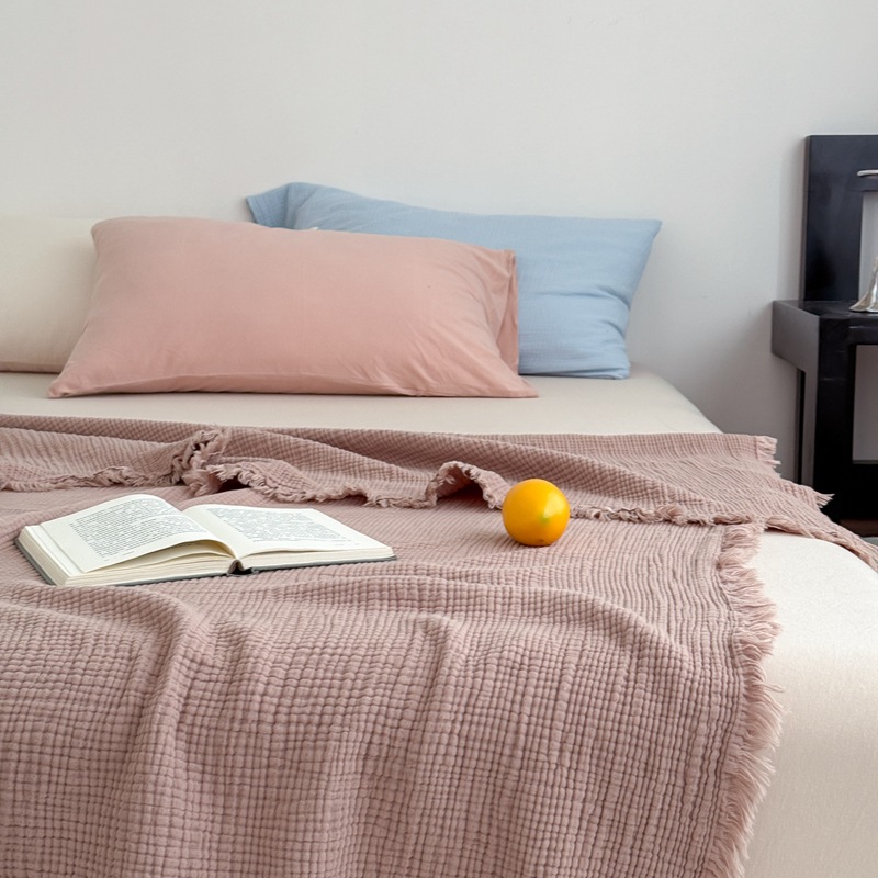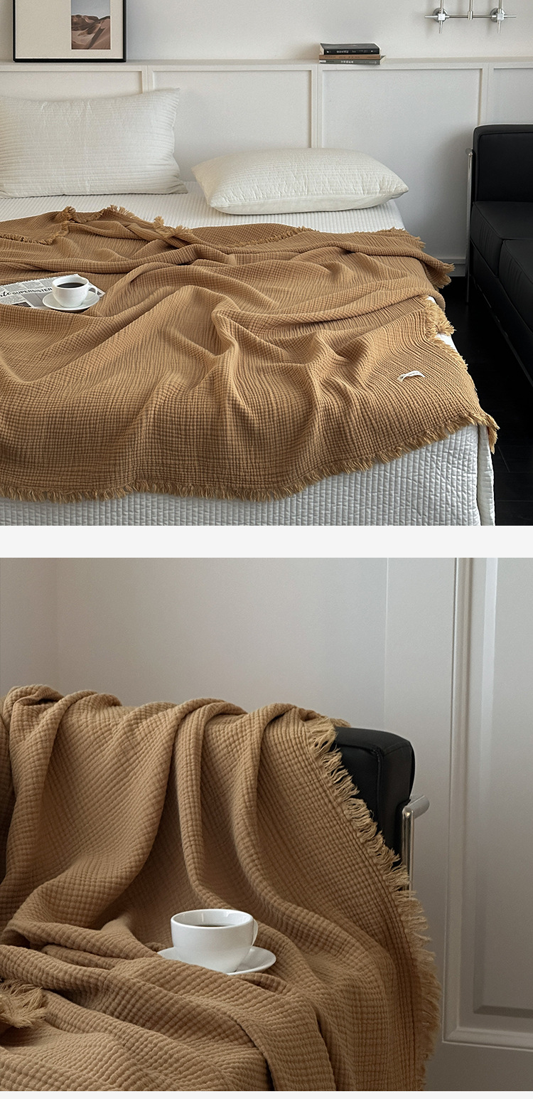 메일라드 컬러 4겹 순면 담요 태슬 담요 소파 담요 사무실 담요 낮잠 담요