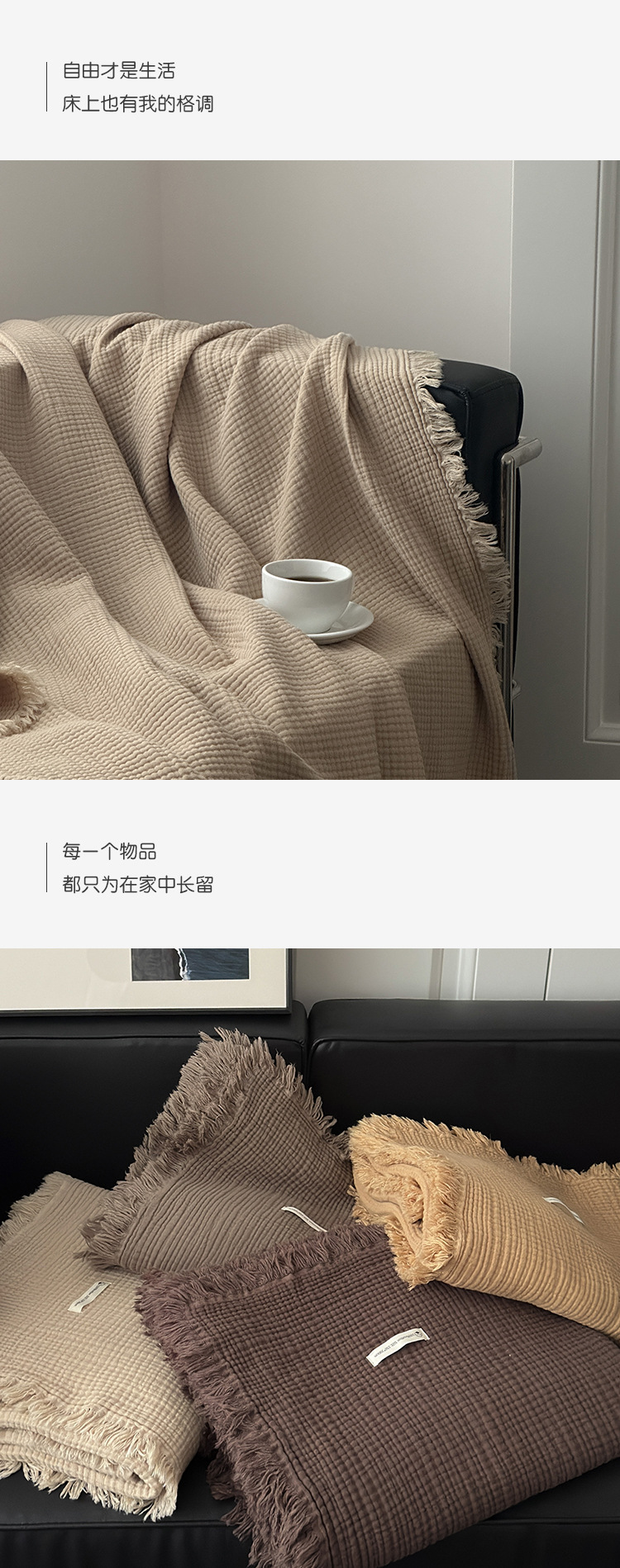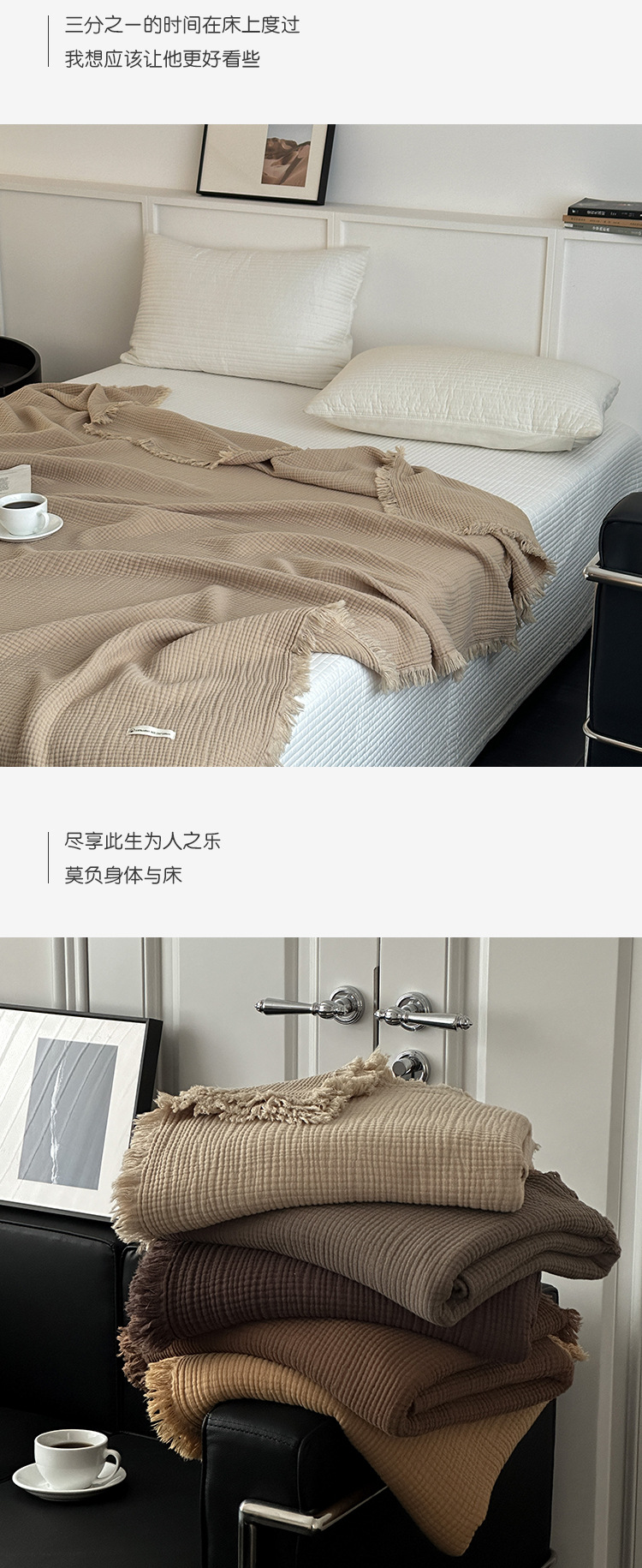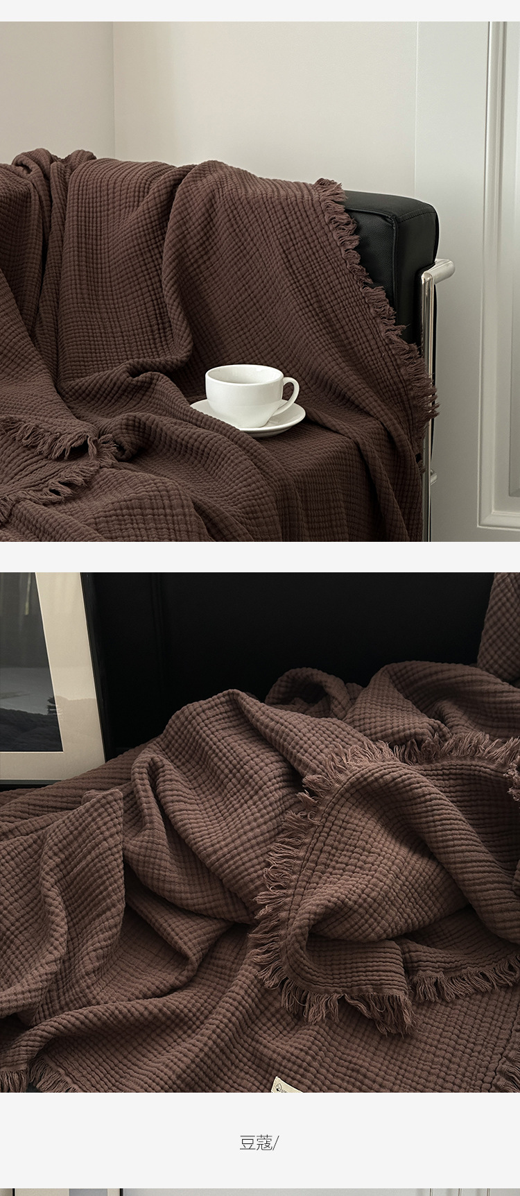 메일라드 컬러 4겹 순면 담요 태슬 담요 소파 담요 사무실 담요 낮잠 담요