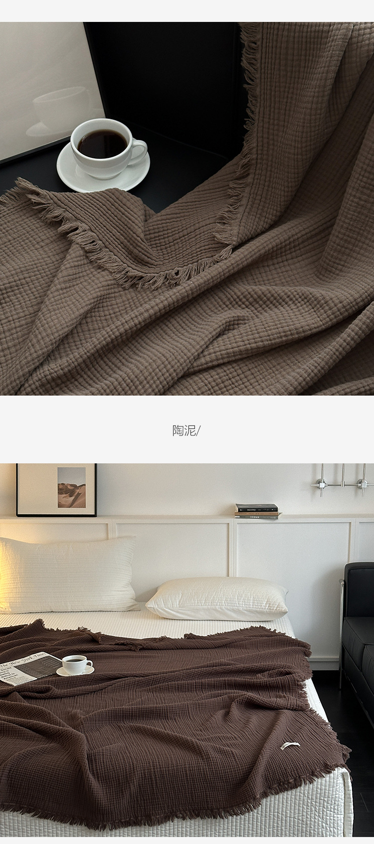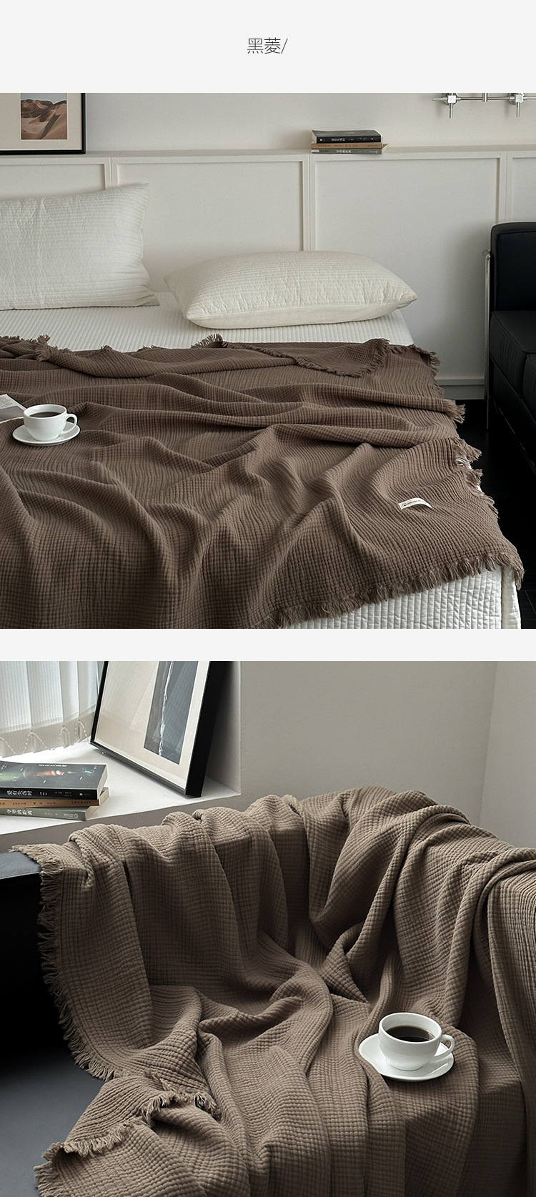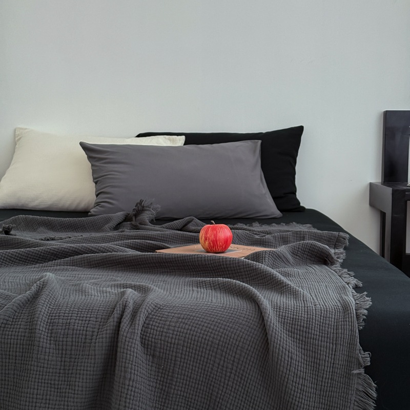 • 4겹 거즈 태슬 담요 - 카본 블랙
