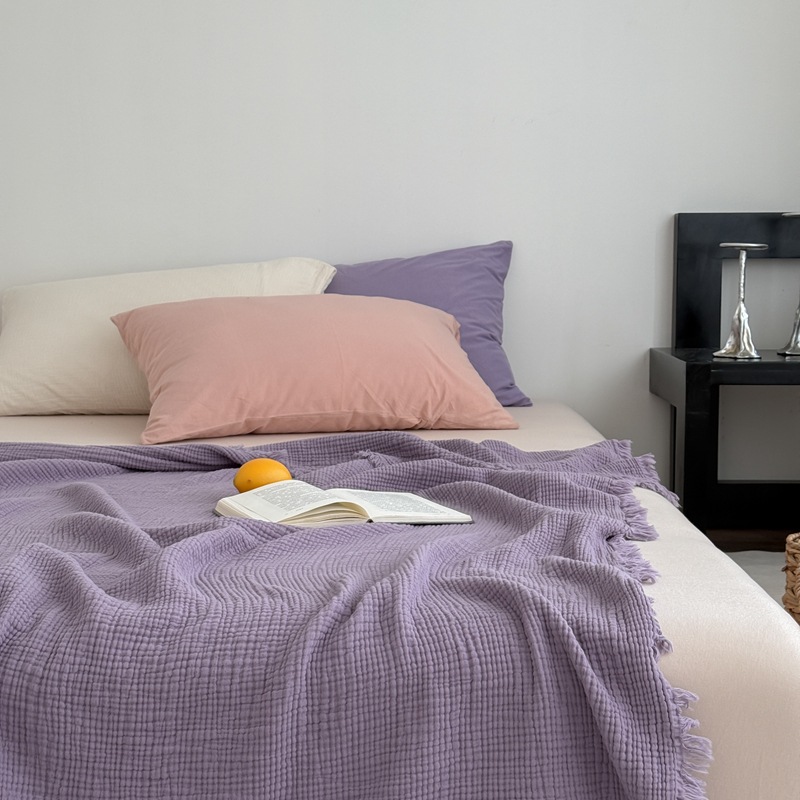 • 4겹 거즈 태슬 담요 - 스모크 퍼플