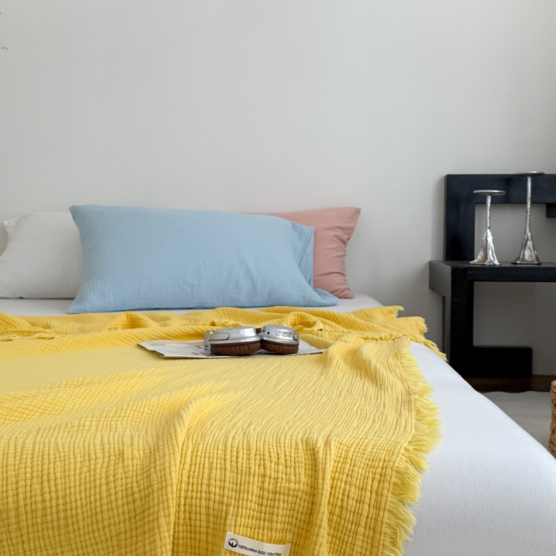 • 4겹 거즈 태슬 담요 - 레몬 옐로우