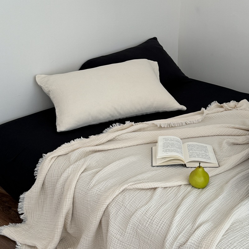 • 4겹 거즈 태슬 담요 - 크림 화이트