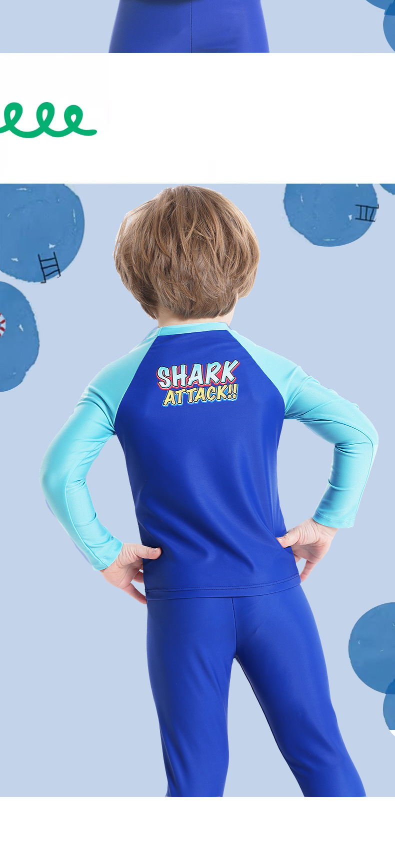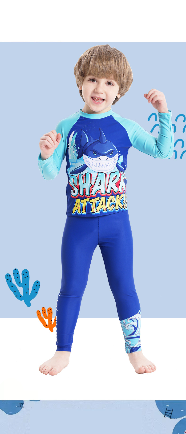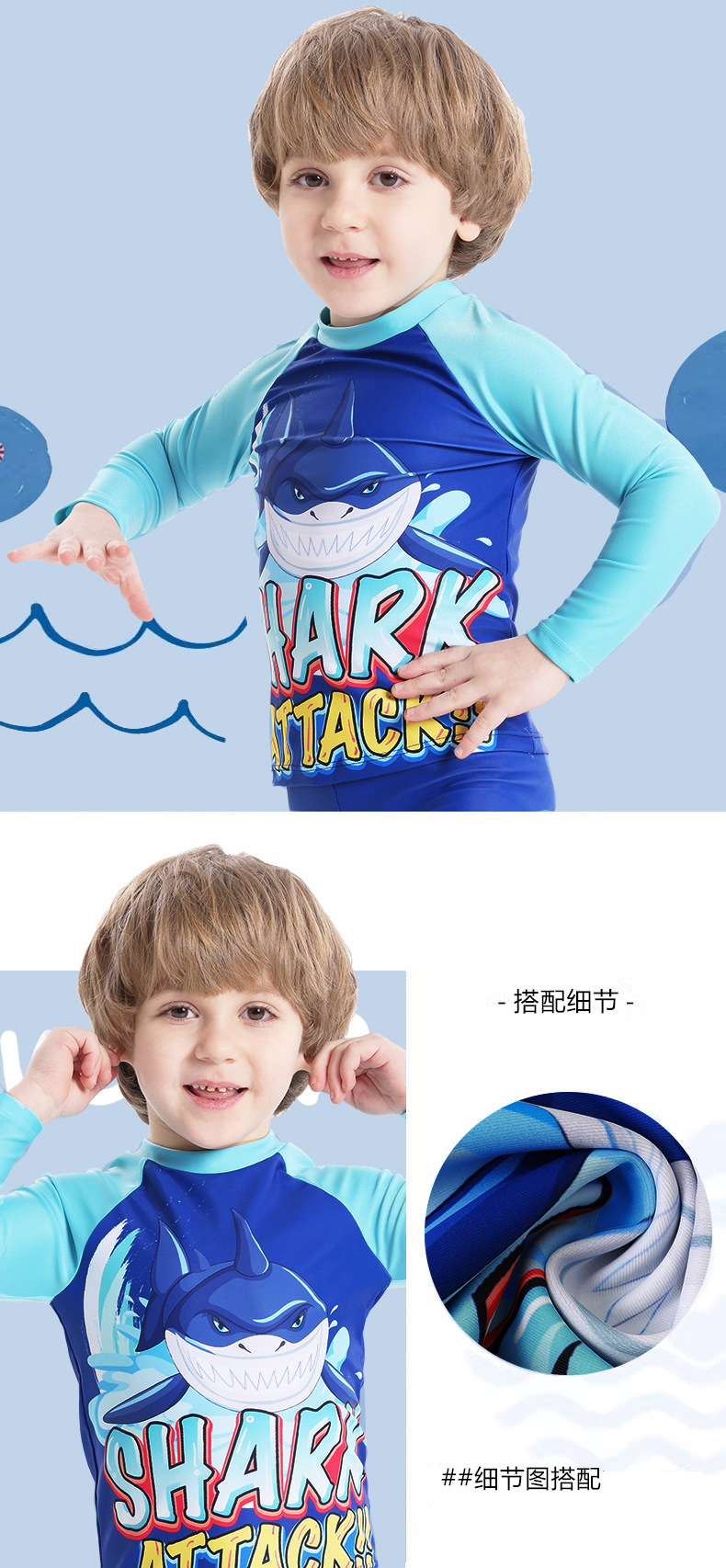 어린이 수영복 긴팔 소년 수영복 2025 새로운 스플릿 바지 투피스 상어 프린트 소년 수영복