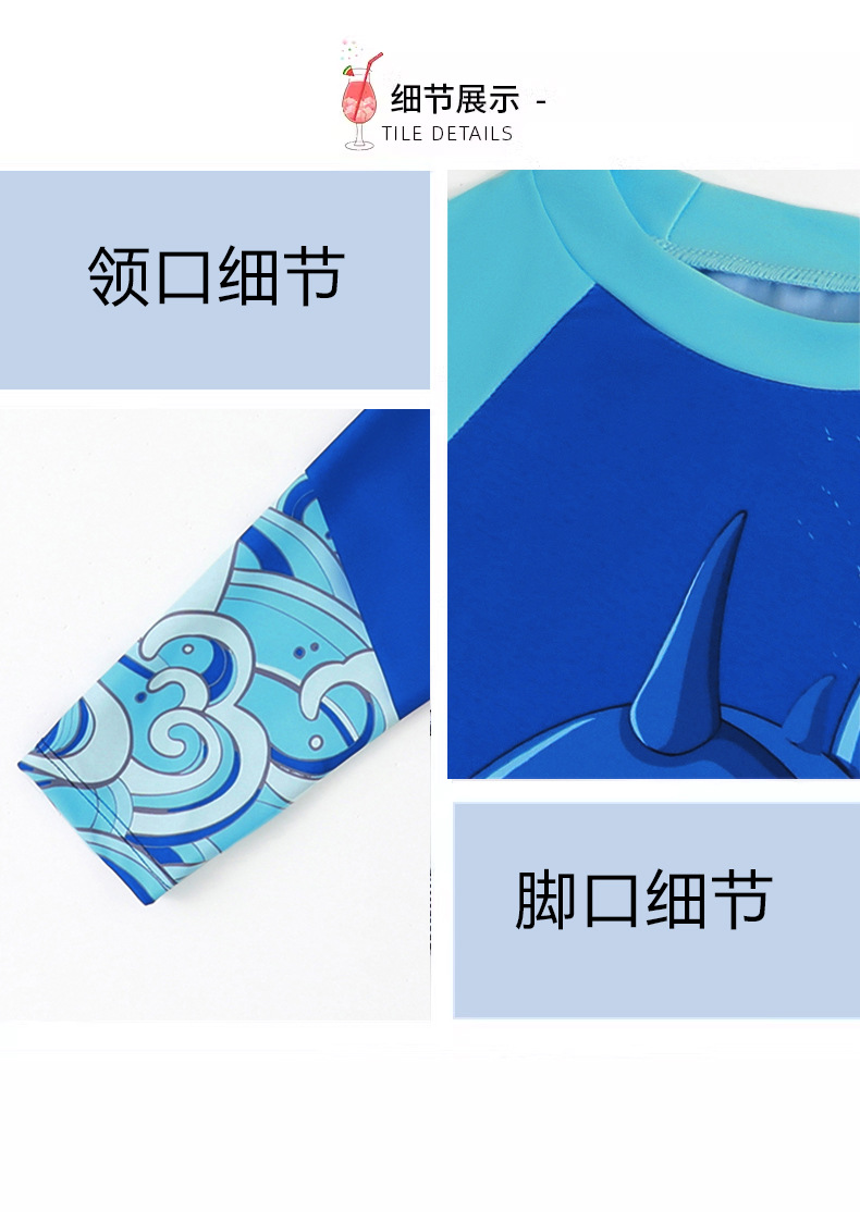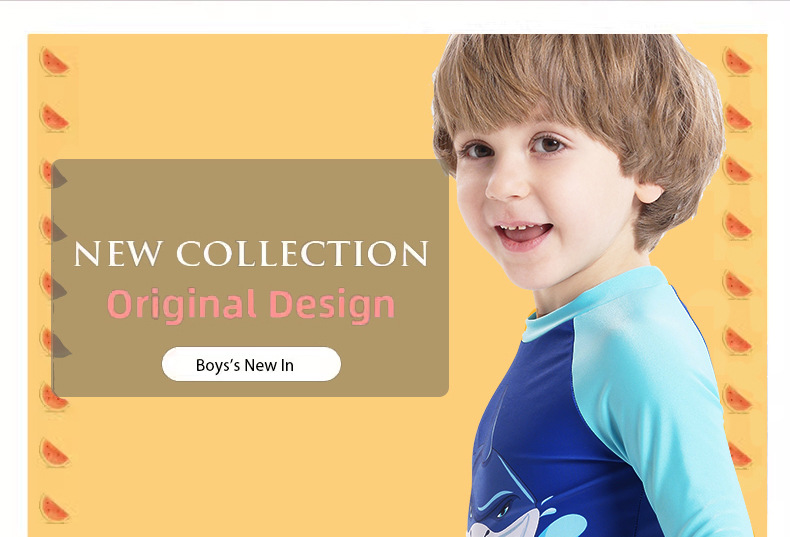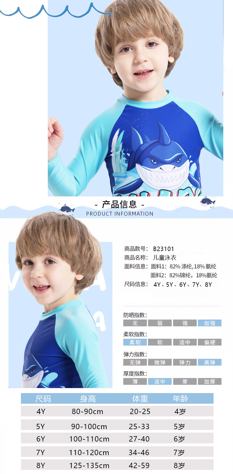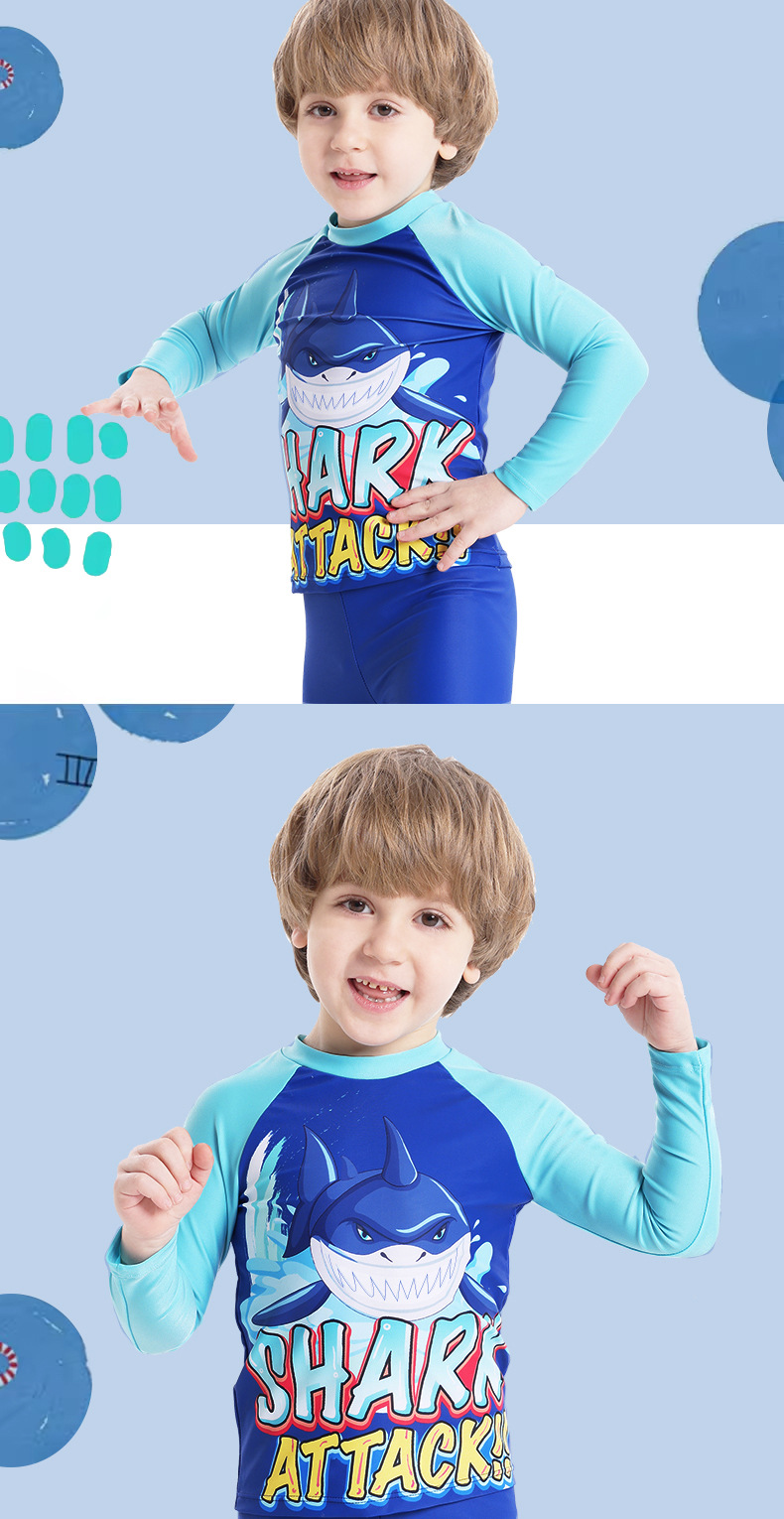 어린이 수영복 긴팔 소년 수영복 2025 새로운 스플릿 바지 투피스 상어 프린트 소년 수영복