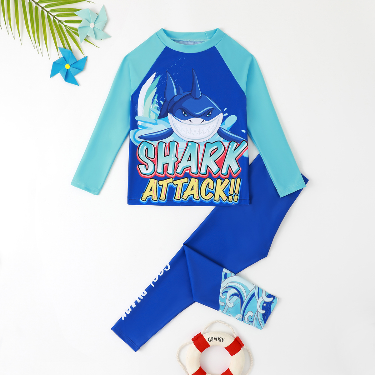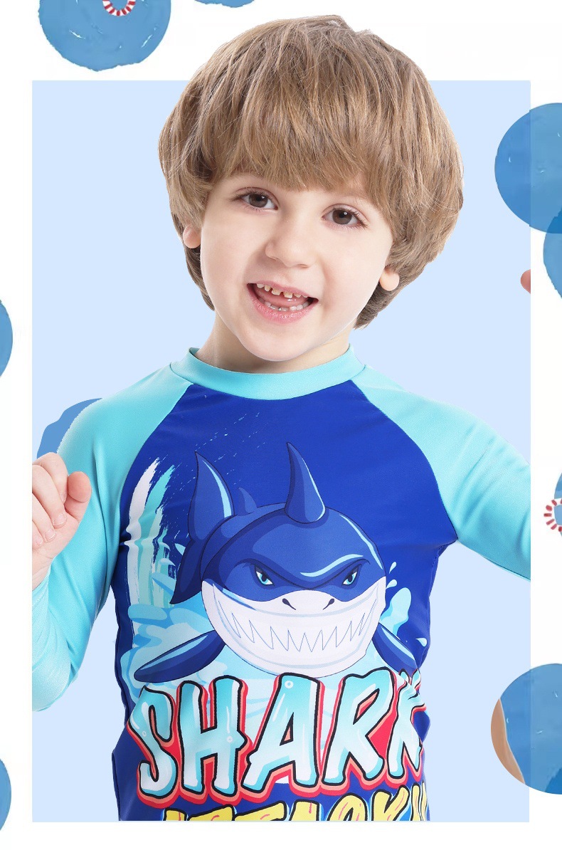 어린이 수영복 긴팔 소년 수영복 2025 새로운 스플릿 바지 투피스 상어 프린트 소년 수영복스토어 가기