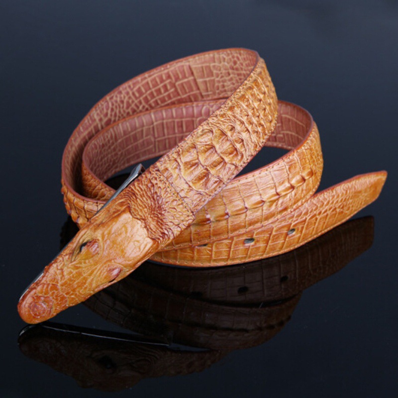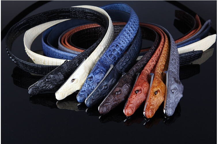 남녀공용 인기 악어가죽 허리띠, 물고기뼈 무늬 가죽벨트, 매끄러운 버클 벨트, 여성 도매 및 배송스토어 가기