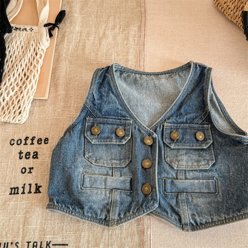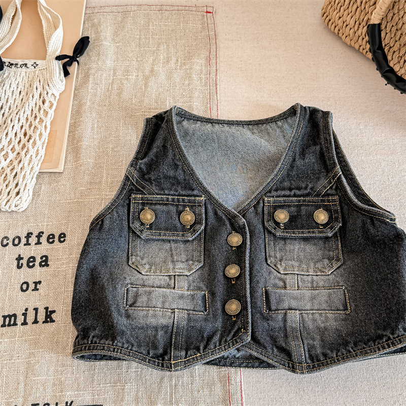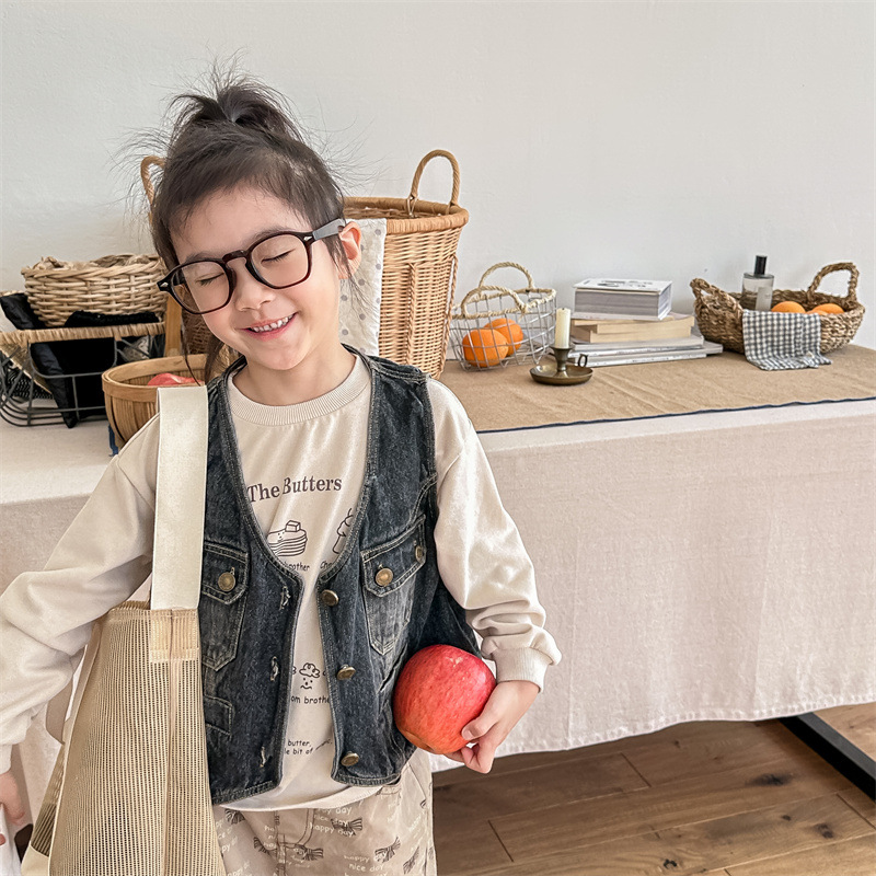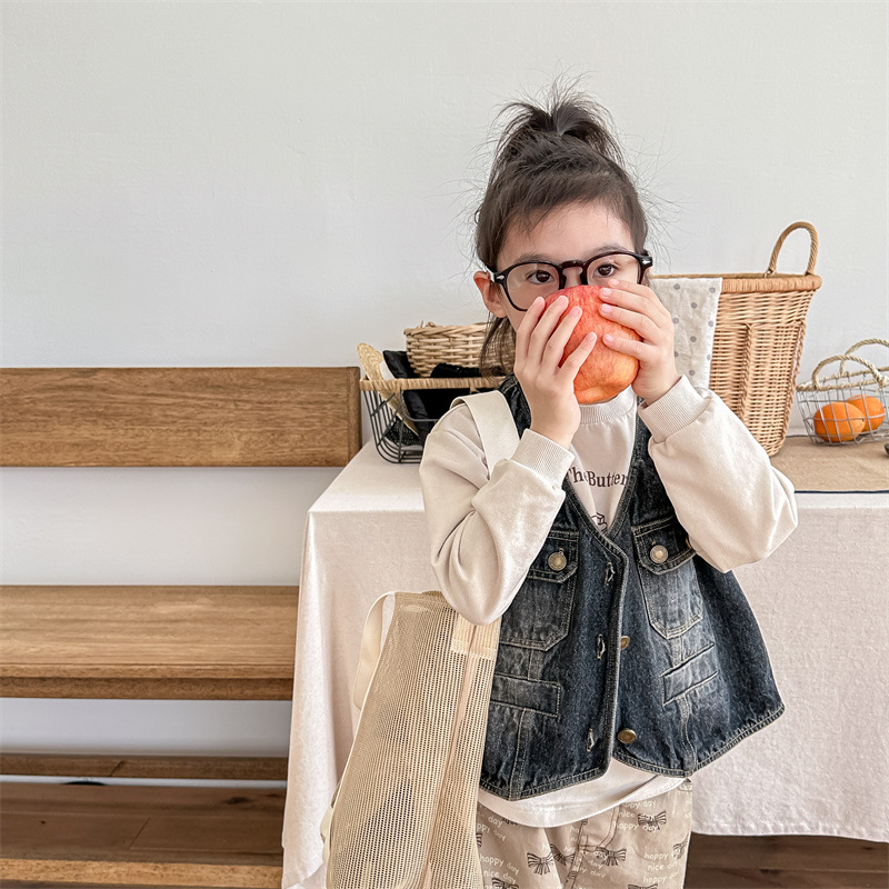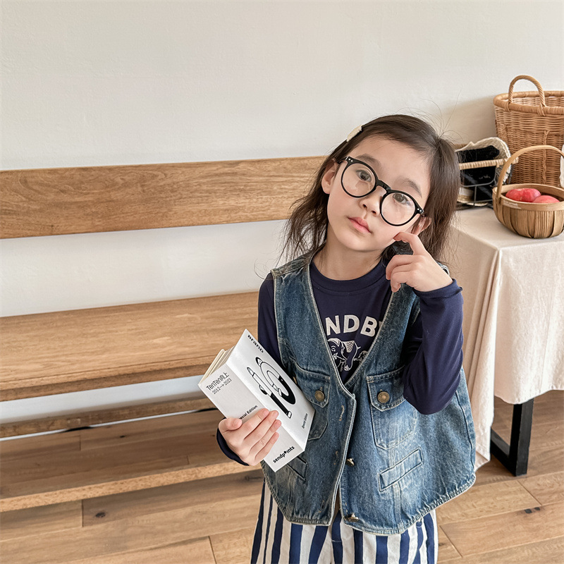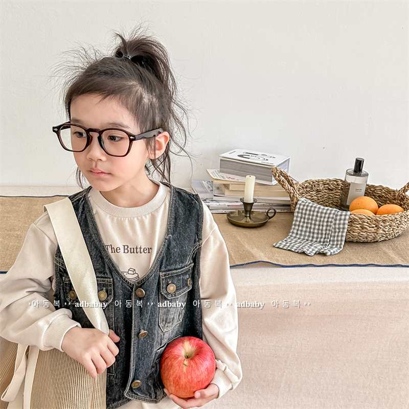 2026 봄 아동복 어린이 한국 스타일 봄 가을 데님 조끼 여아 가을 스타일 조끼 소형 코트 5005