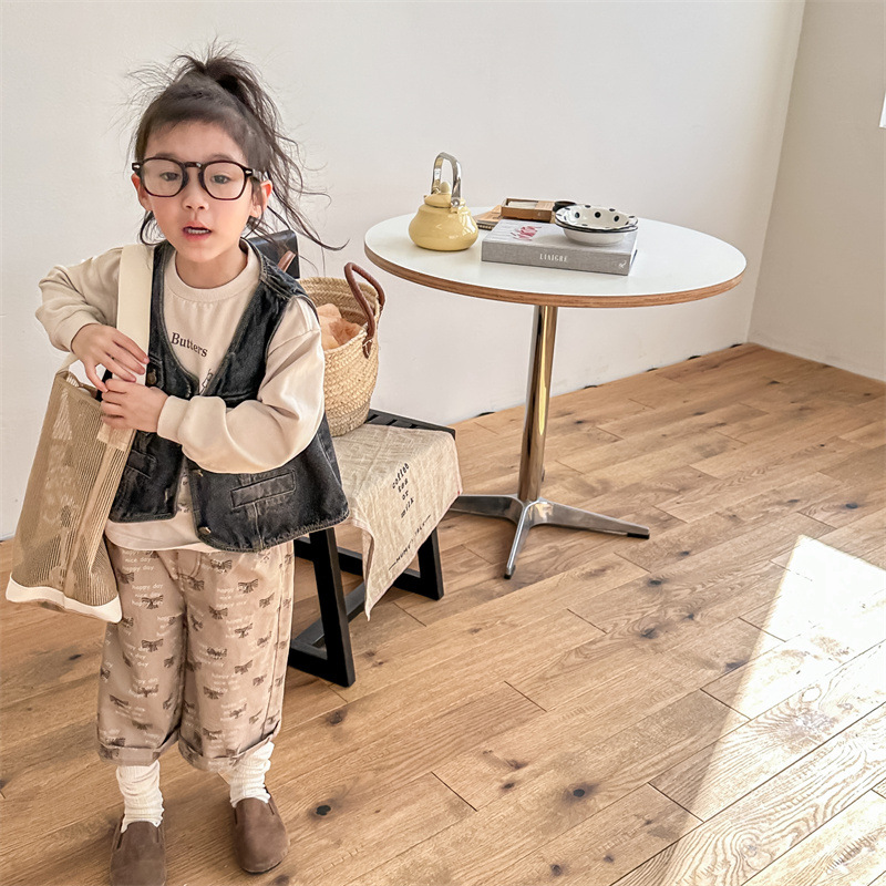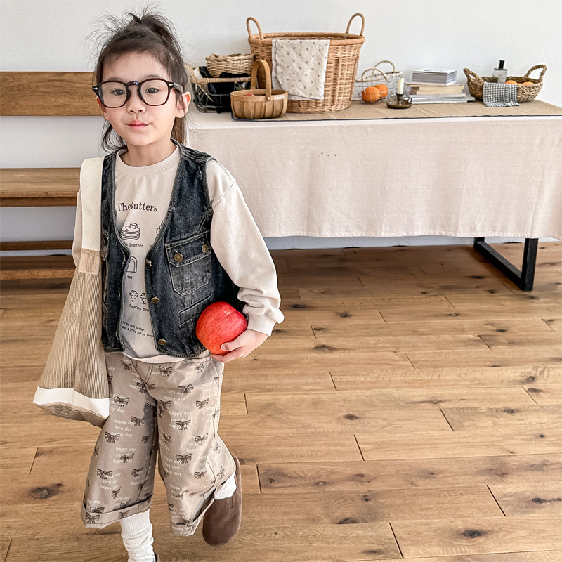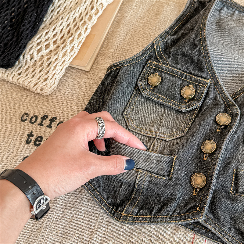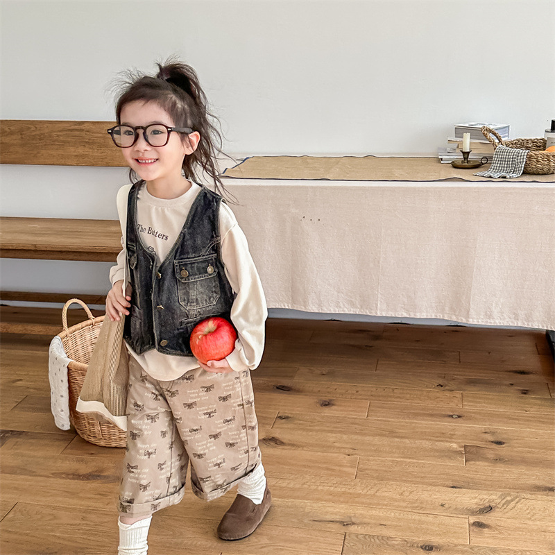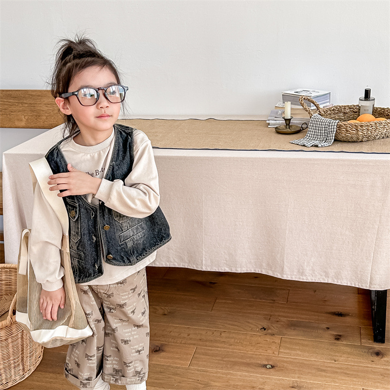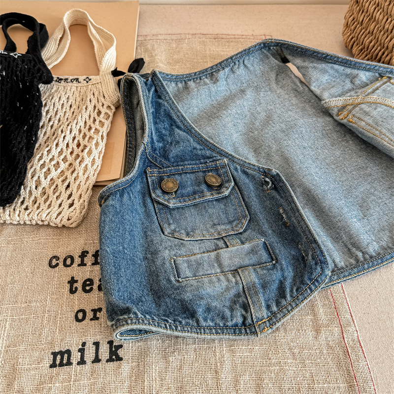 2026 봄 아동복 어린이 한국 스타일 봄 가을 데님 조끼 여아 가을 스타일 조끼 소형 코트 5005