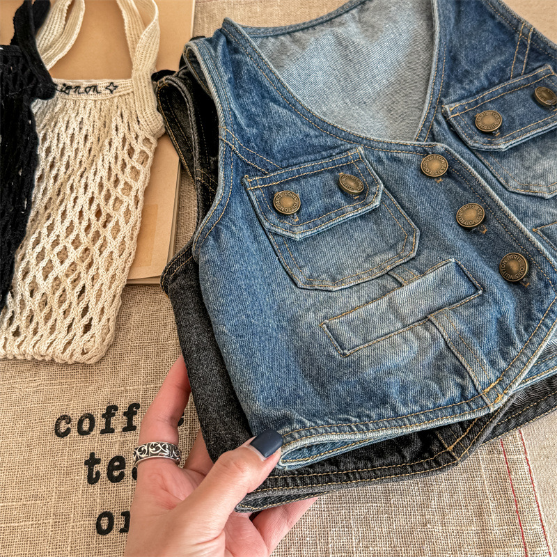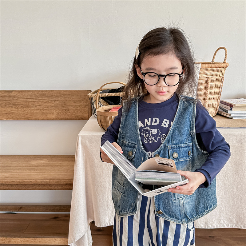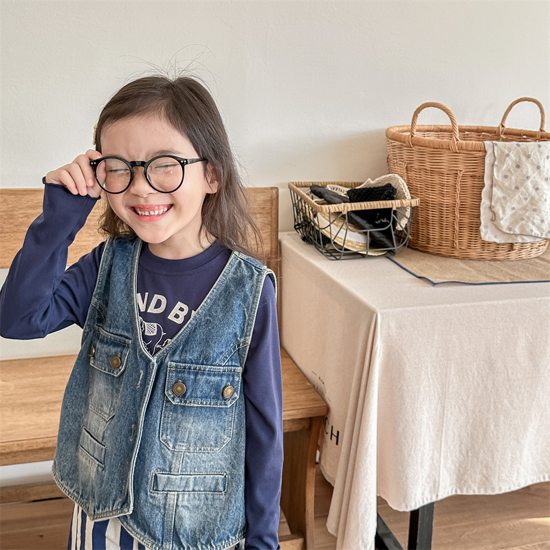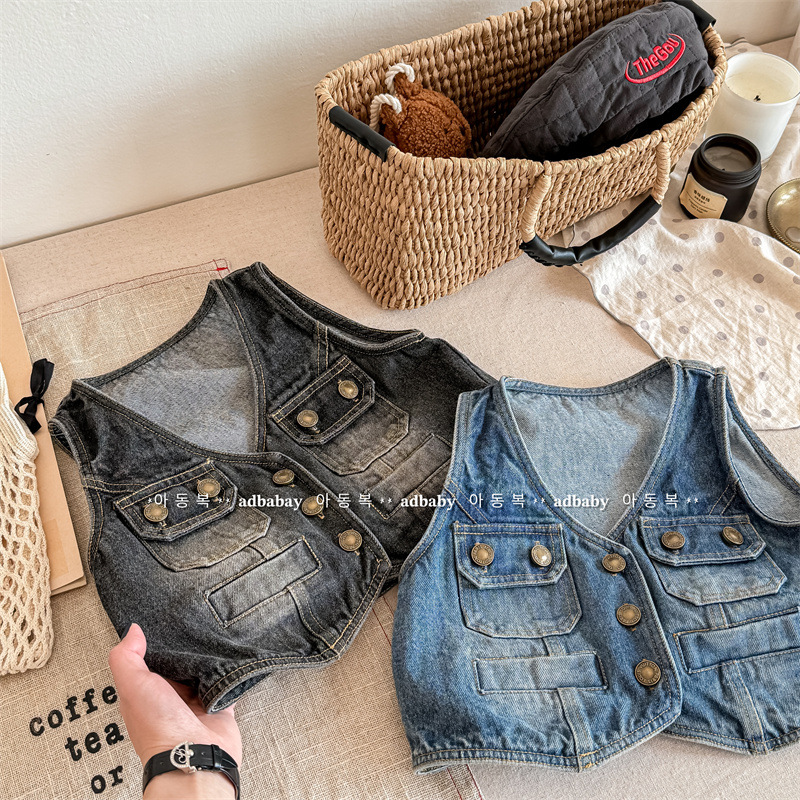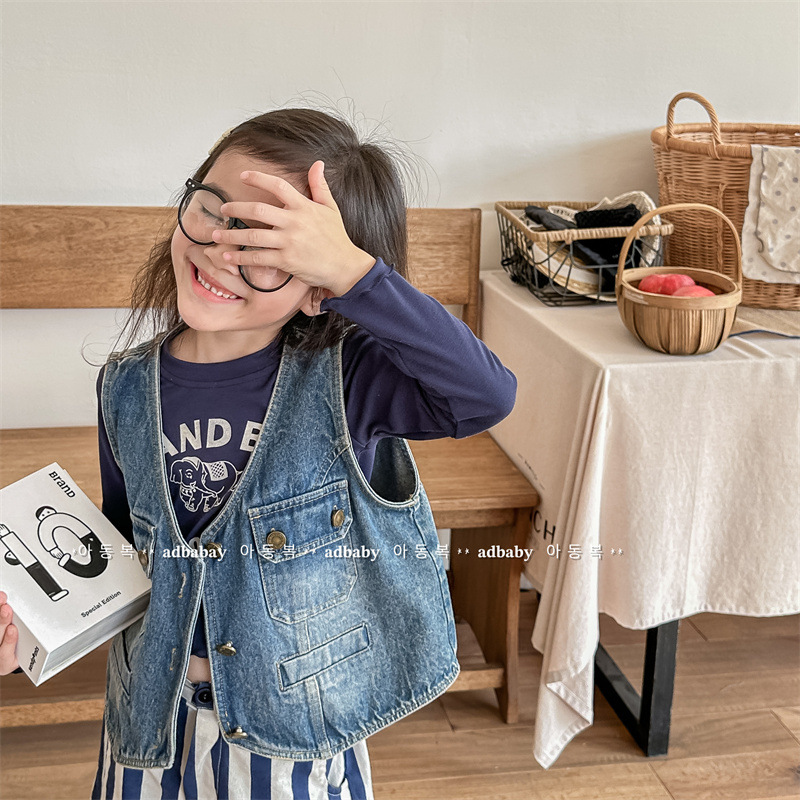 2026 봄 아동복 어린이 한국 스타일 봄 가을 데님 조끼 여아 가을 스타일 조끼 소형 코트 5005스토어 가기
