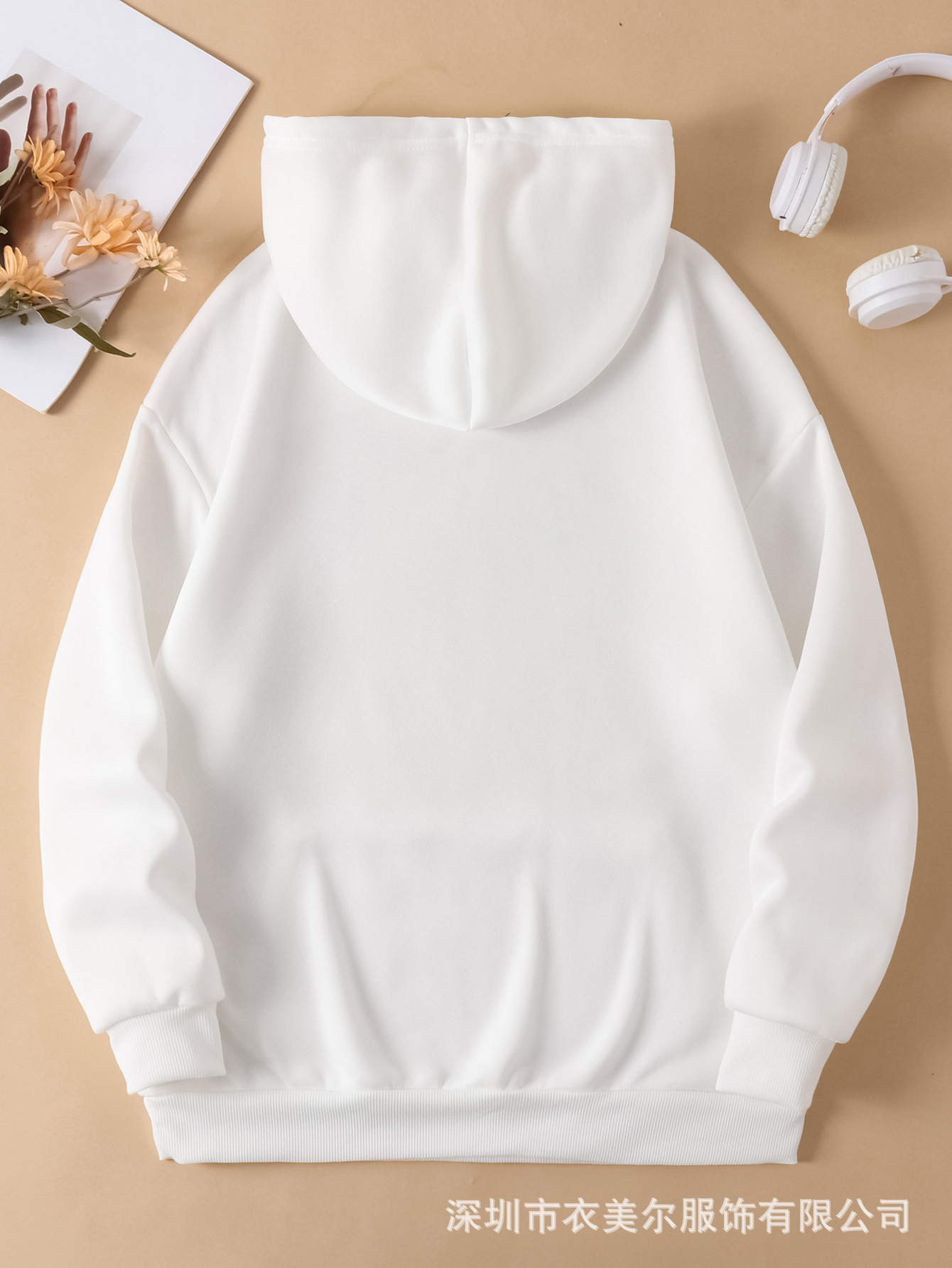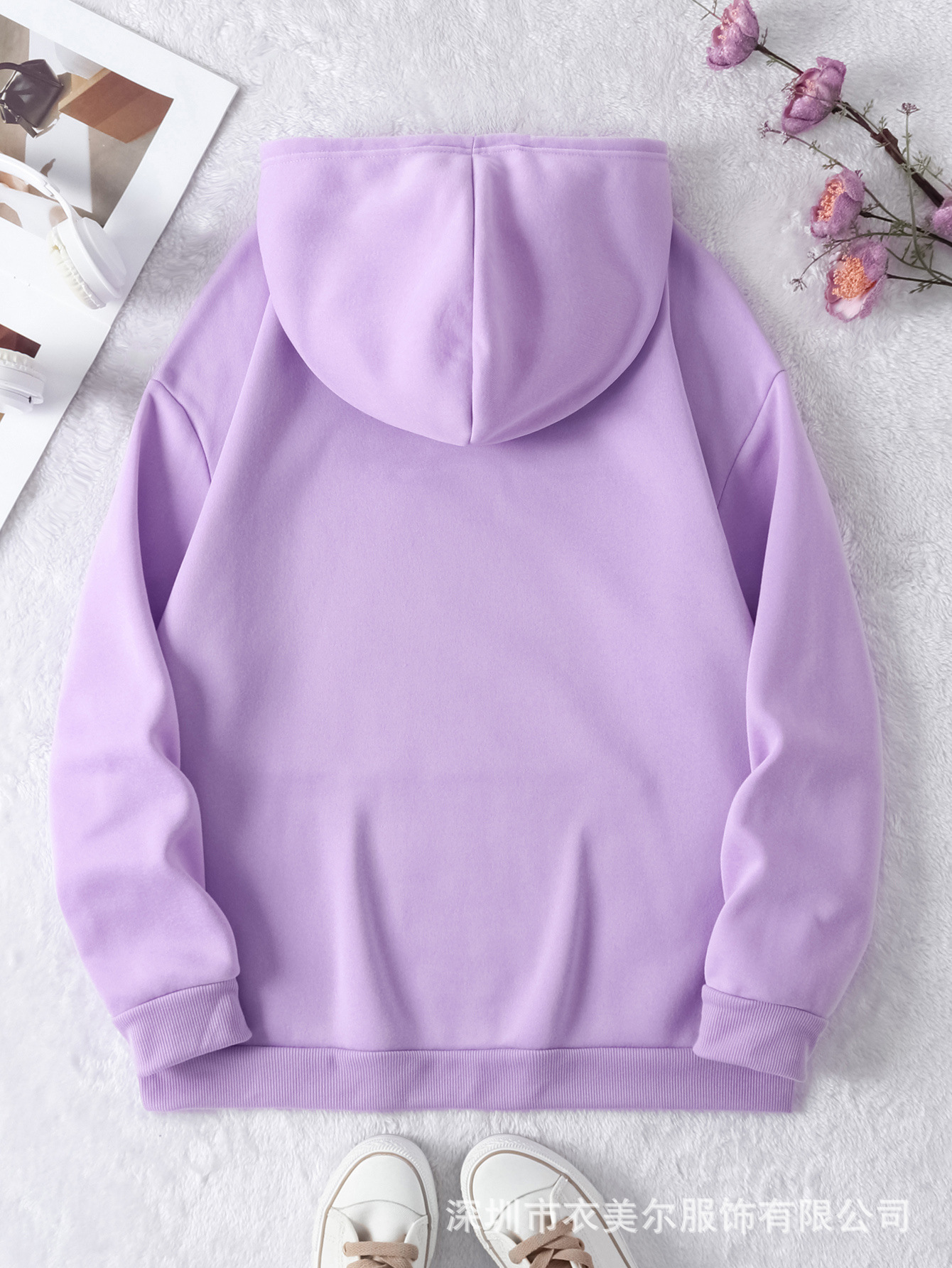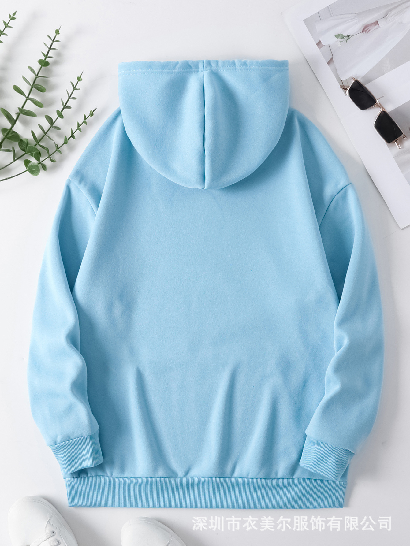 대외 무역 여성의 기모 스웨터 일반 편지 인쇄 캥거루 포켓 서랍 인쇄 후드스토어 가기