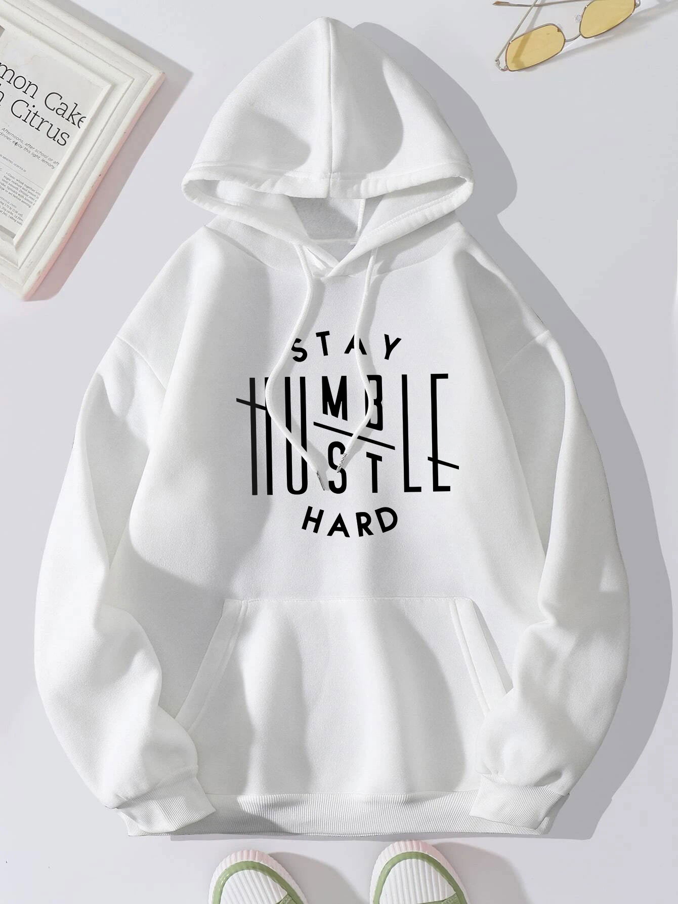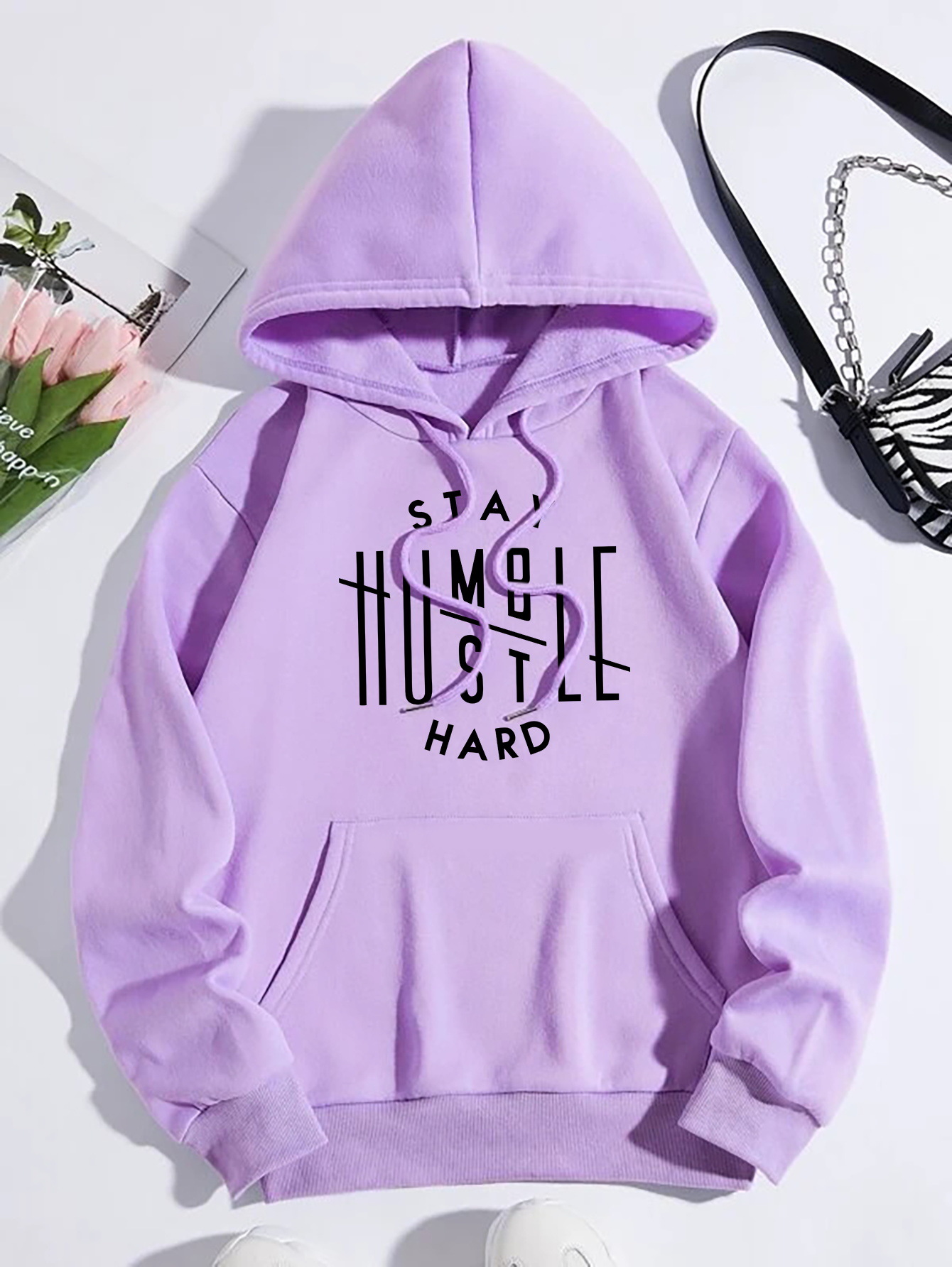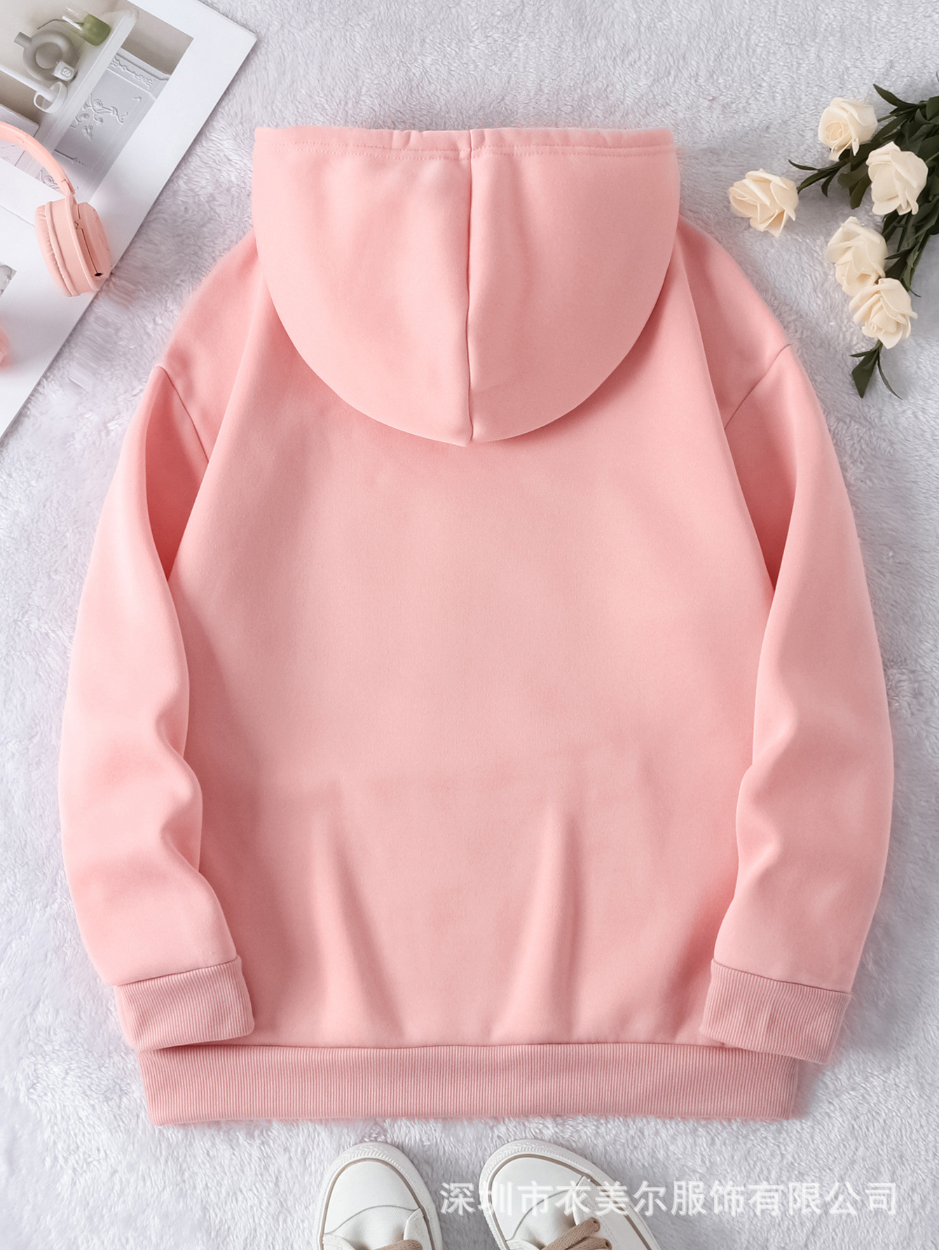 대외 무역 여성의 기모 스웨터 일반 편지 인쇄 캥거루 포켓 서랍 인쇄 후드스토어 가기
