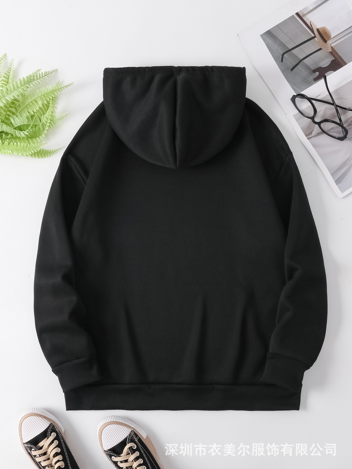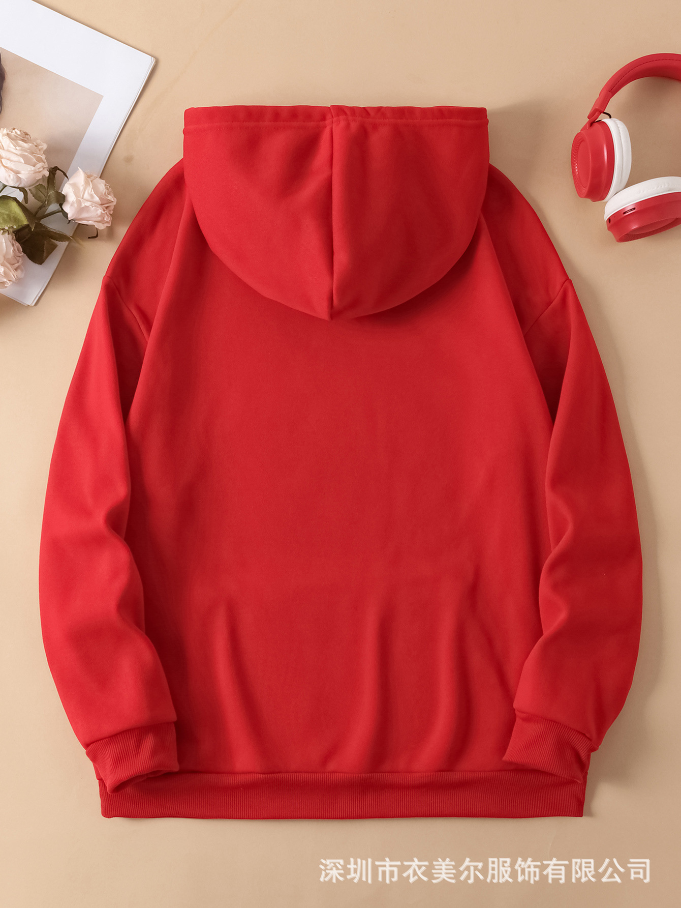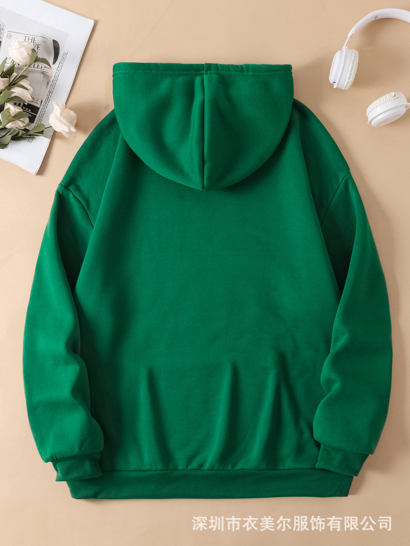 대외 무역 여성의 기모 스웨터 일반 편지 인쇄 캥거루 포켓 서랍 인쇄 후드