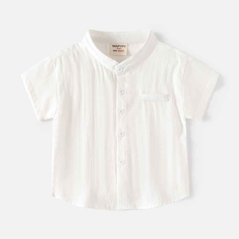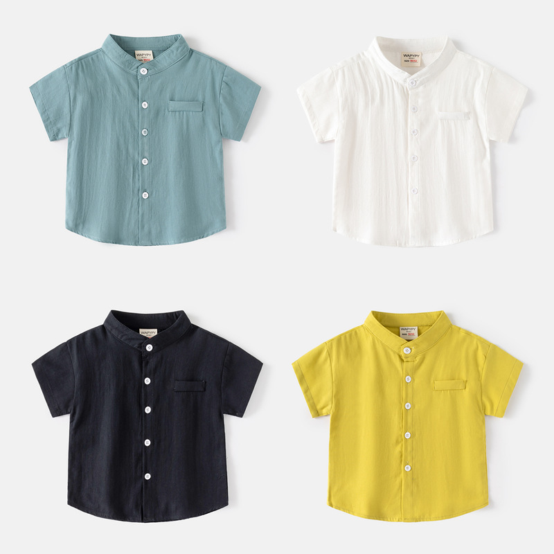 아동용 반팔 셔츠 2026 여름옷 도매 남아용 V넥 반팔 셔츠 한국 스타일 아기용 루즈핏 상의 도매