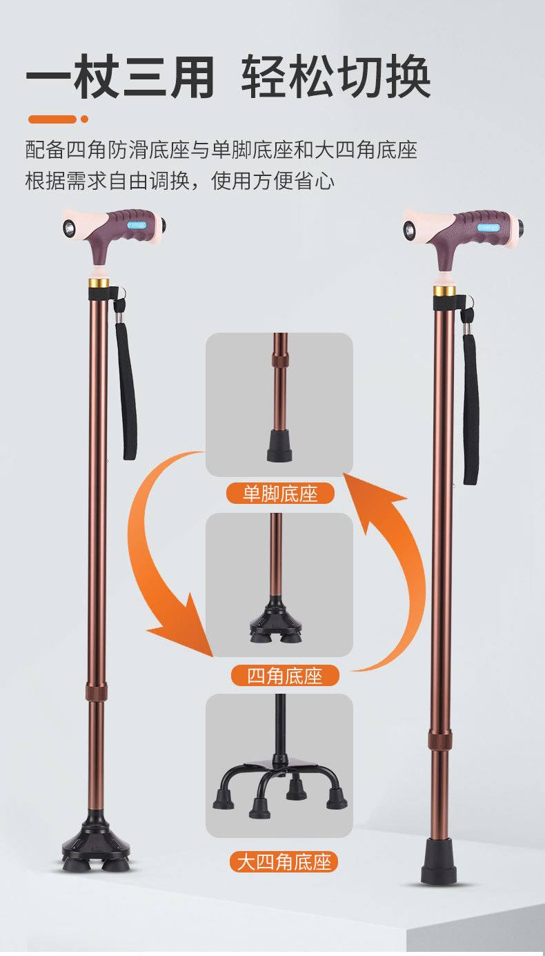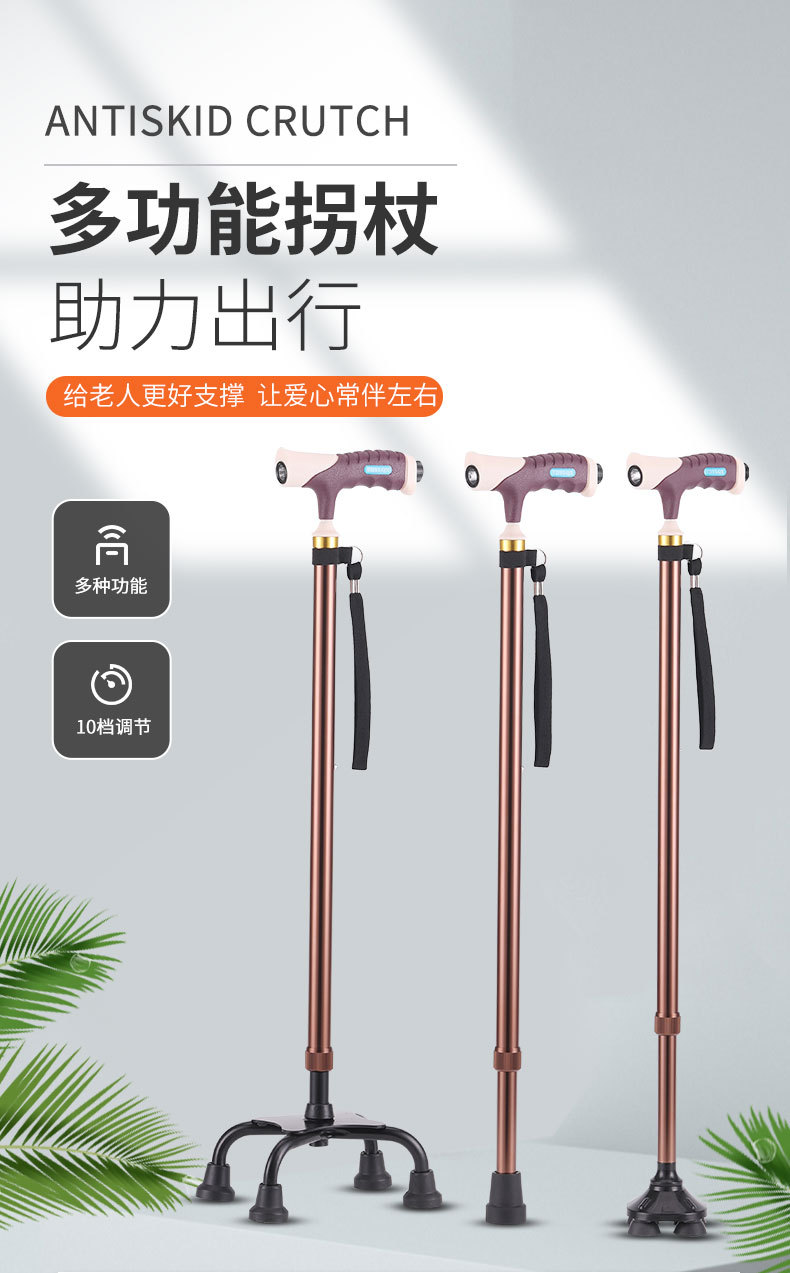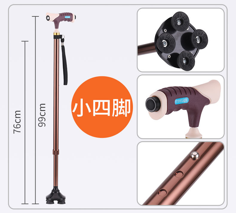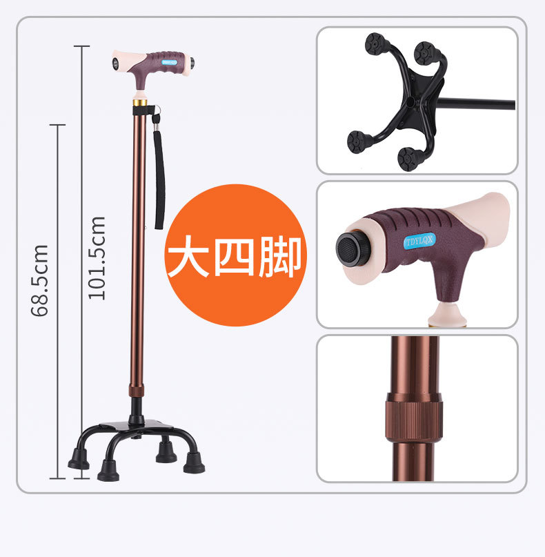 노인 4 코너 텔레스코픽 워킹 스틱을위한 워킹 스틱 두꺼운 다기능 미끄럼 방지 조절 알루미늄 합금 경량 조절 가능