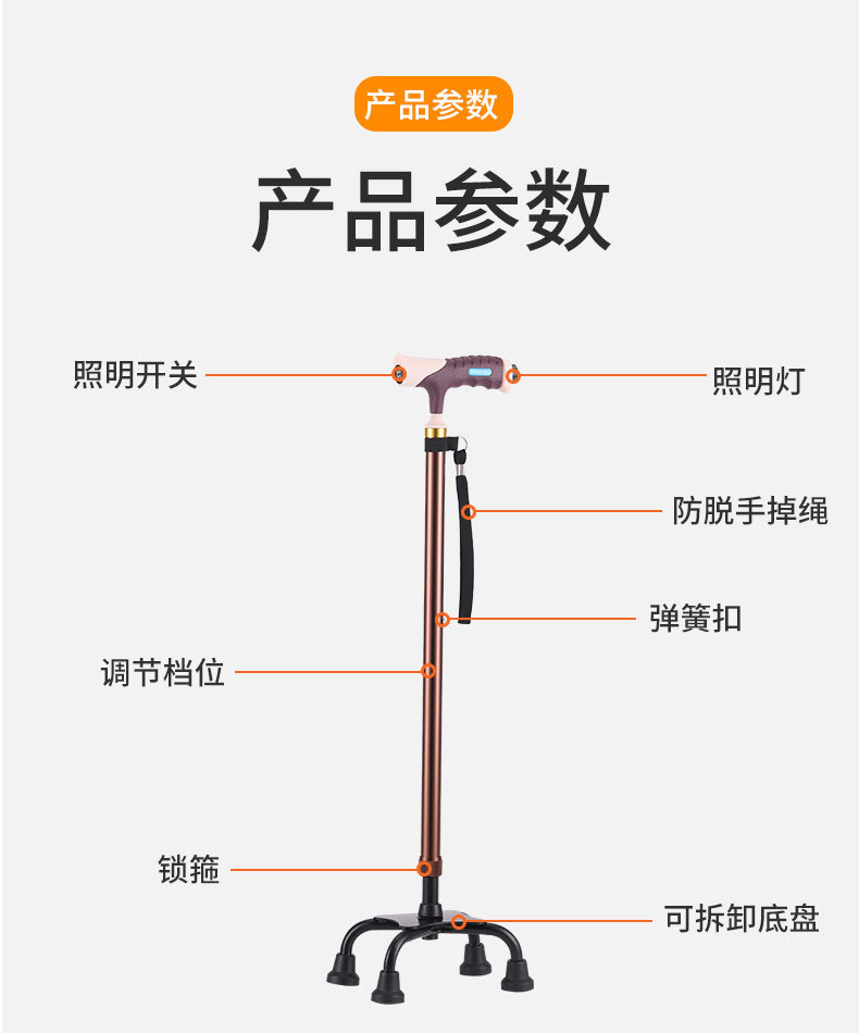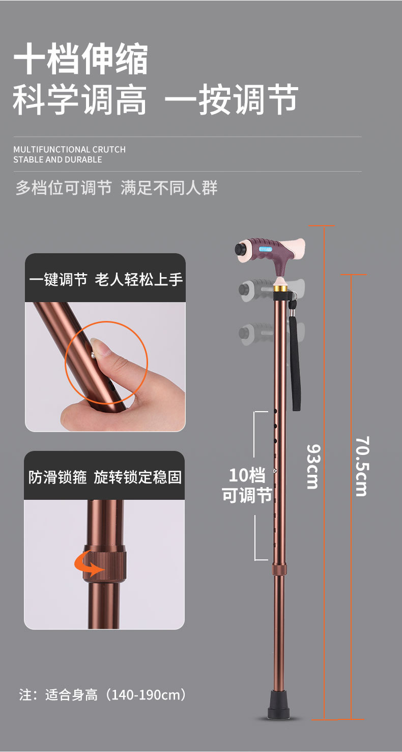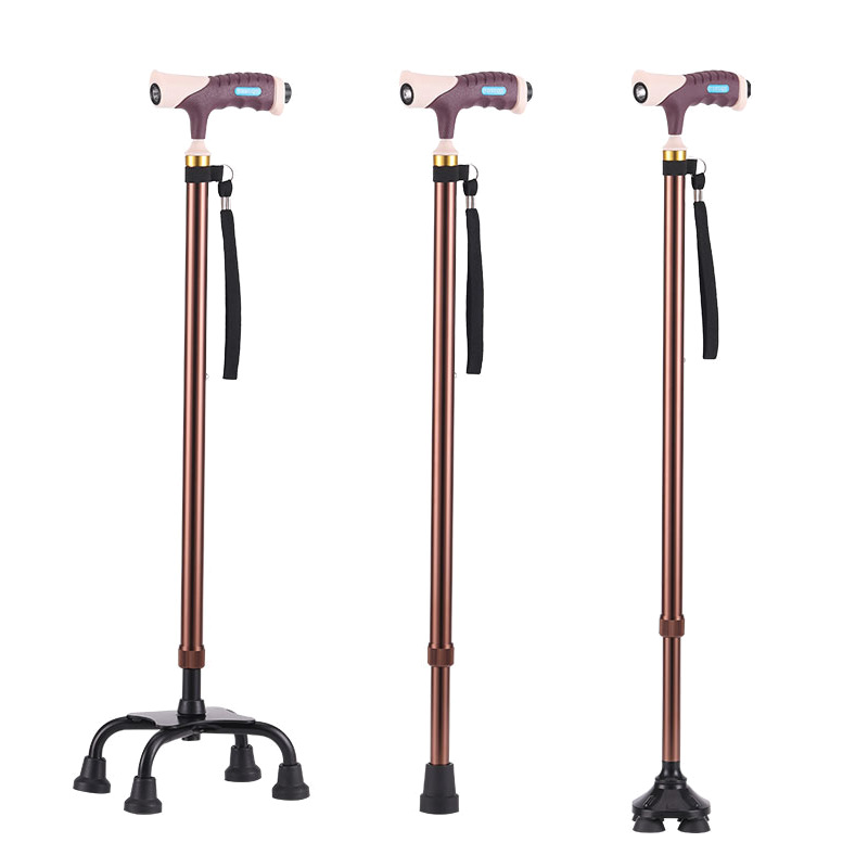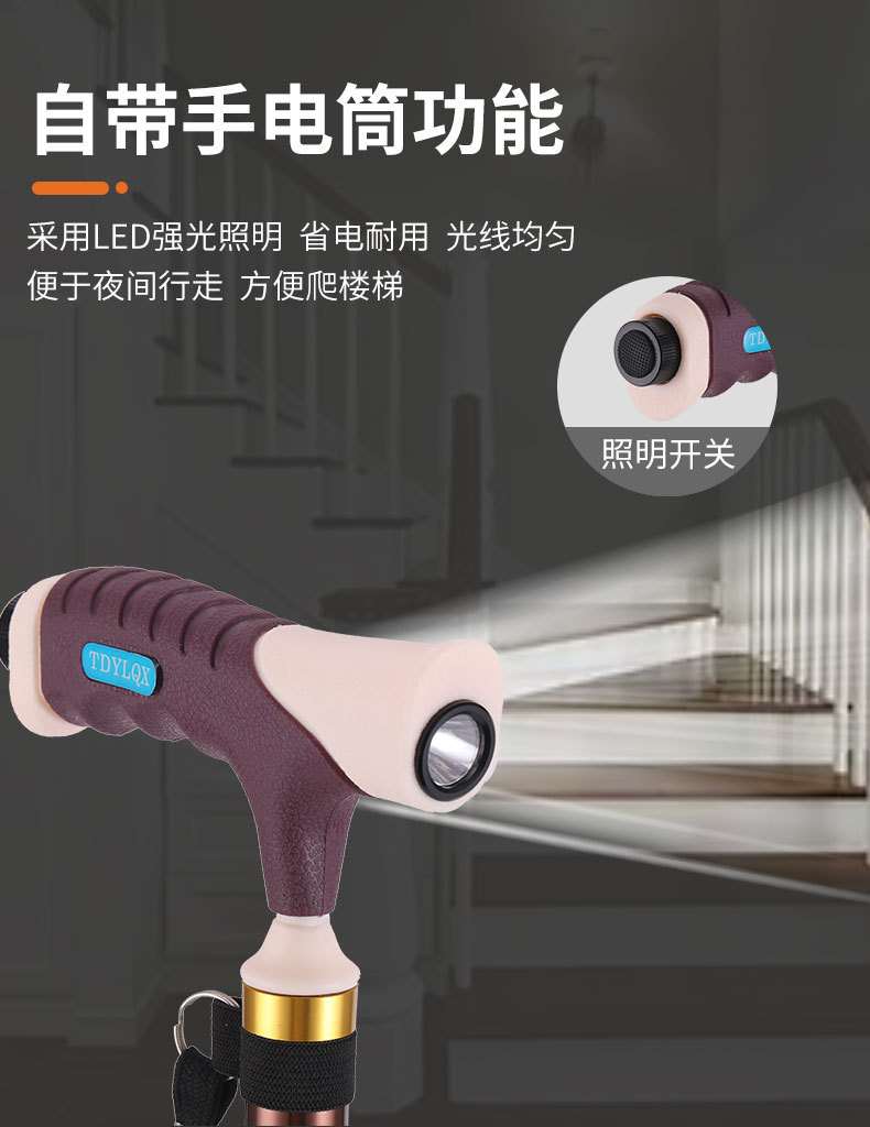 노인 4 코너 텔레스코픽 워킹 스틱을위한 워킹 스틱 두꺼운 다기능 미끄럼 방지 조절 알루미늄 합금 경량 조절 가능