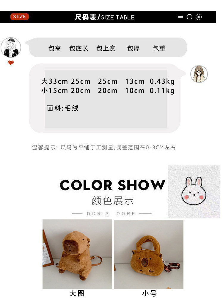 물 기니 돼지 카비 발라 인형 봉제 만화 배낭 소녀의 귀여운 국경 선물 크로스 바디 라운드 가방스토어 가기