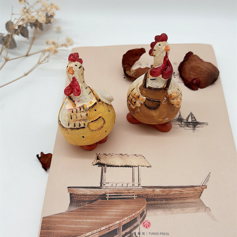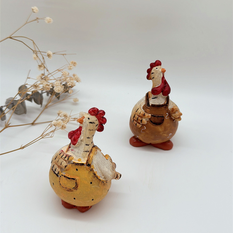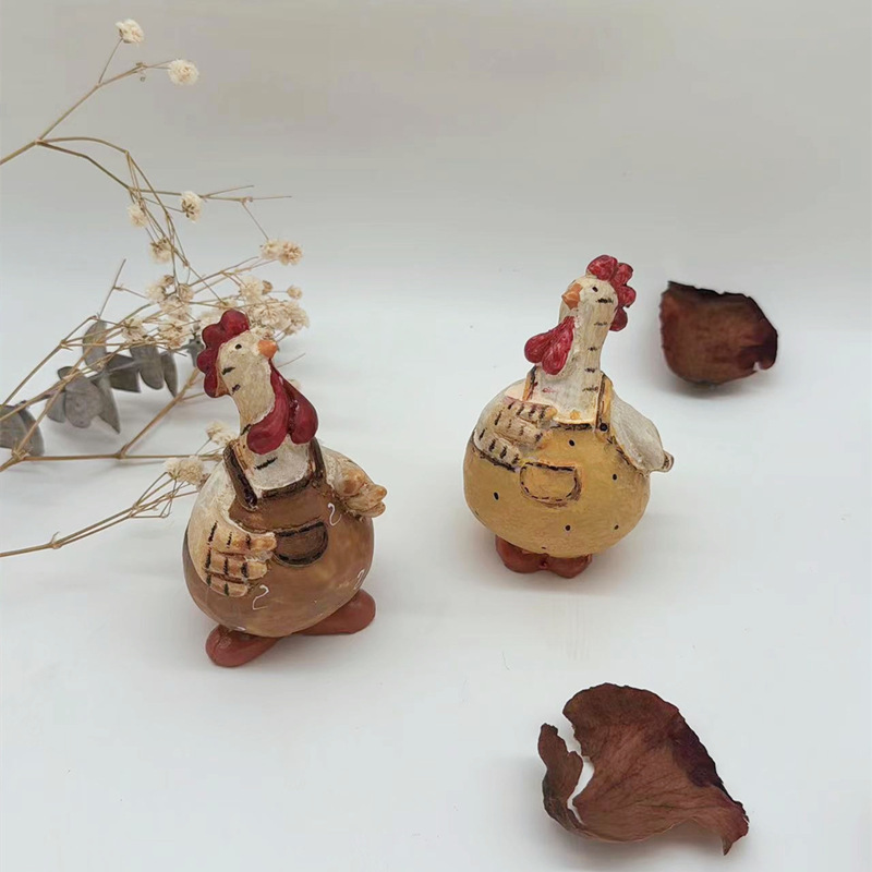 수지 손으로 그린 복고풍 닭 장식품 부활절 장식품 데스크탑 TV 캐비닛 장식품 홈 장식