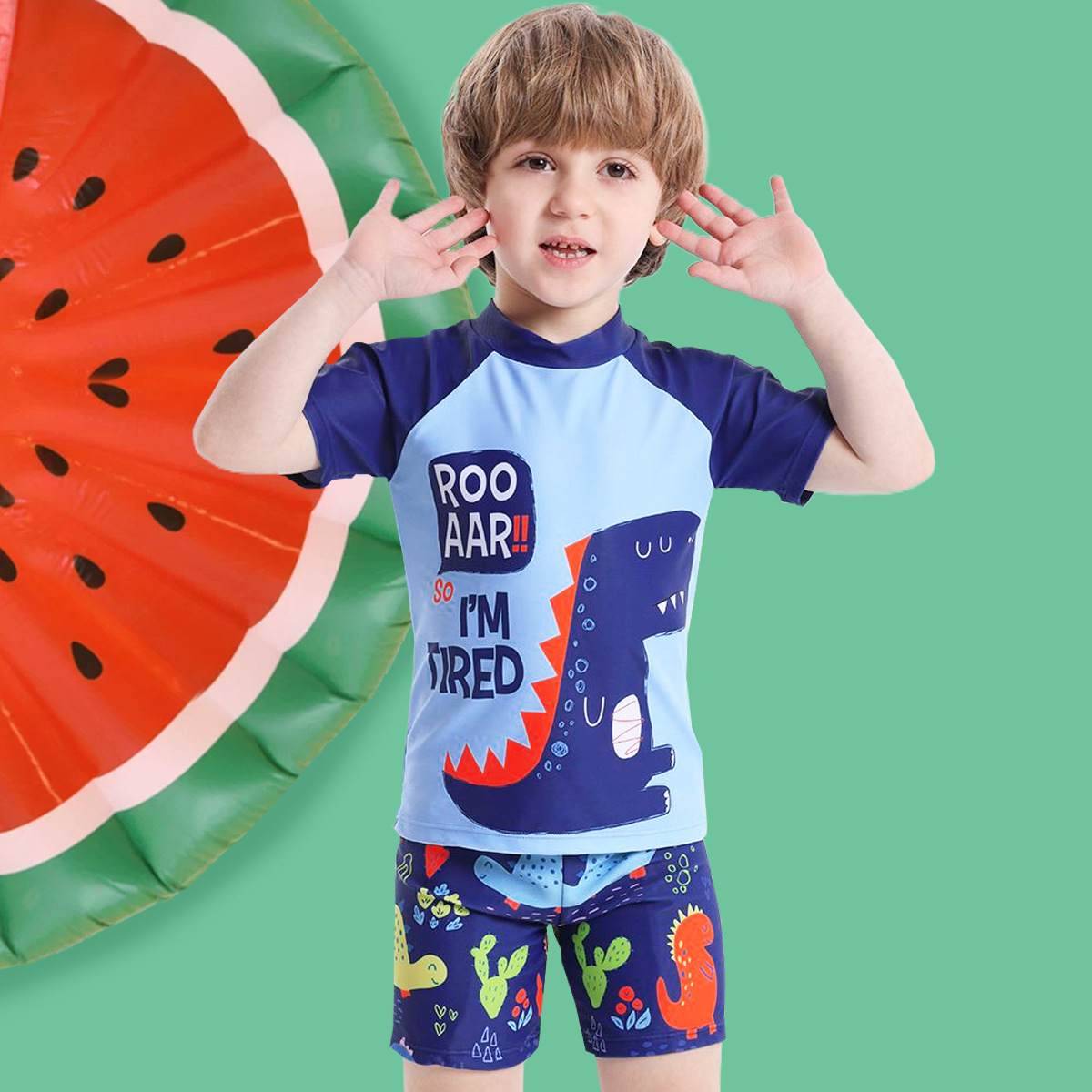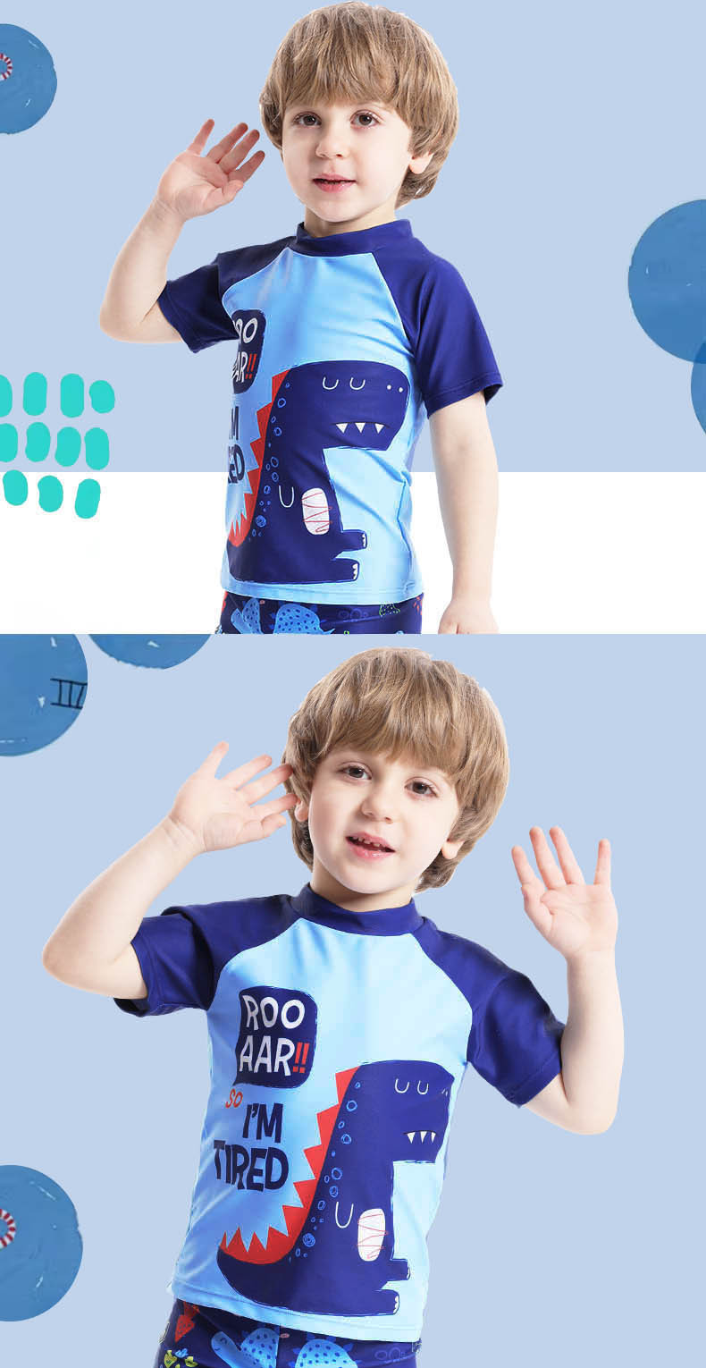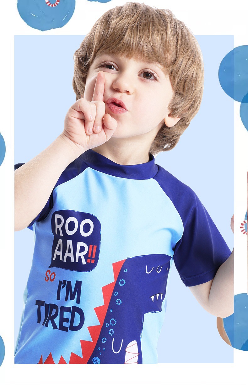 어린이 수영복 남아 수영복 2025 신상 공룡 프린트 반팔 분리형 3피스 세트 남아 수영복스토어 가기