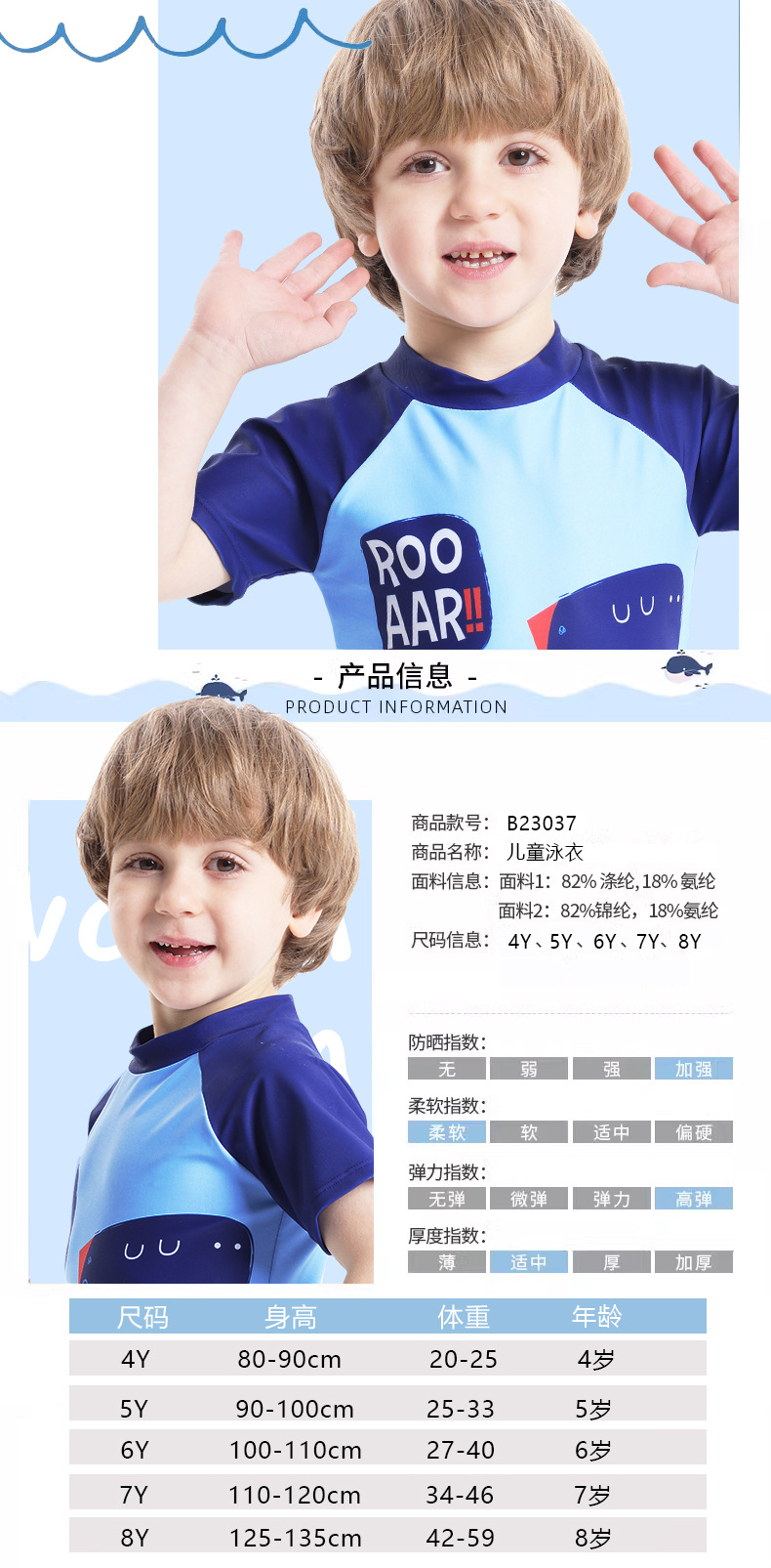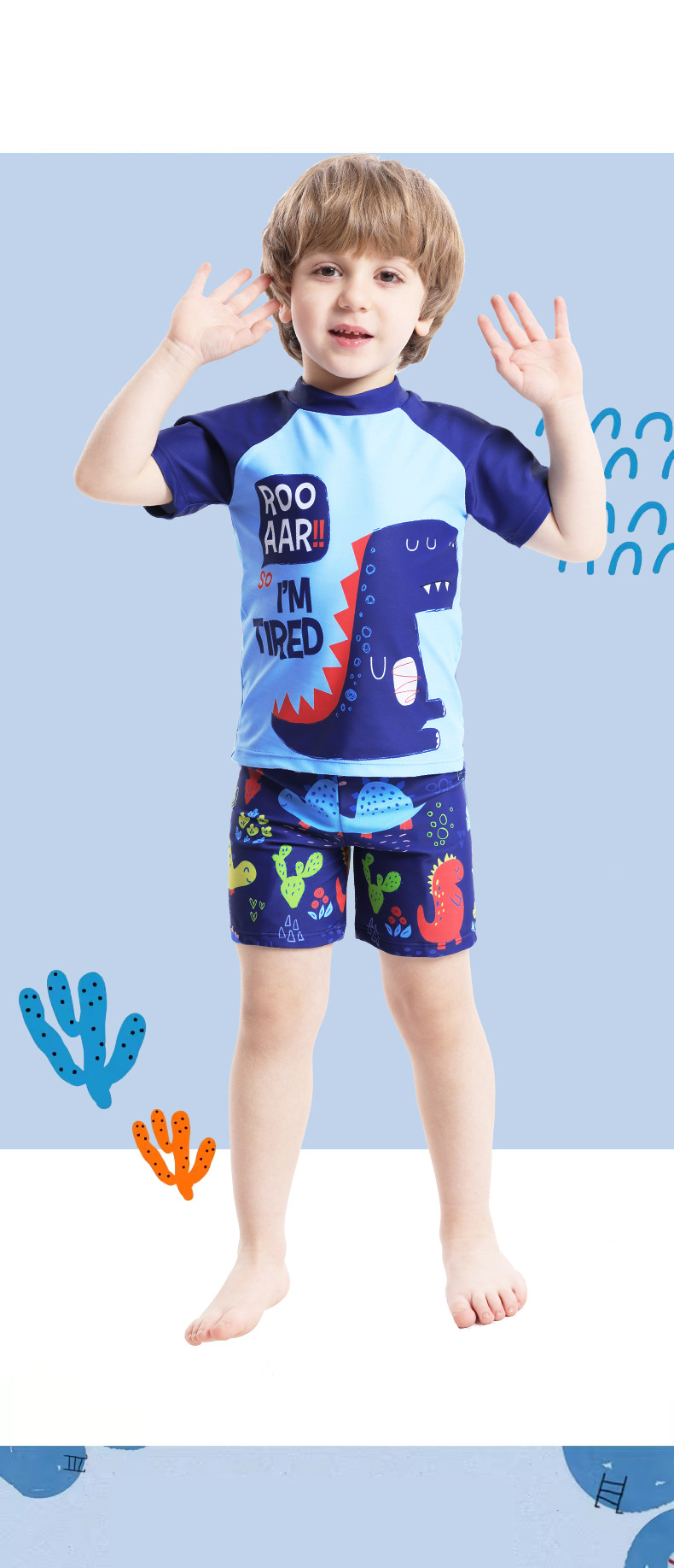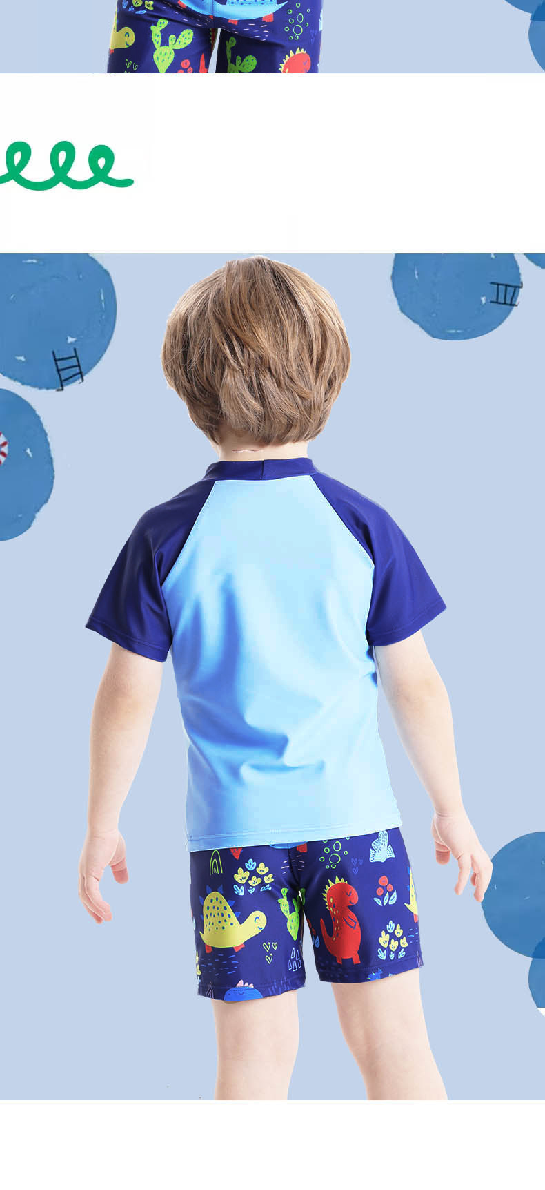어린이 수영복 남아 수영복 2025 신상 공룡 프린트 반팔 분리형 3피스 세트 남아 수영복스토어 가기