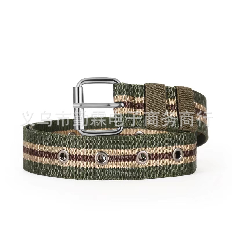 남성 캔버스 핀 버클 벨트 다공성 에어 아이 벨트 학생 청소년 레저 군사 훈련 청바지스토어 가기