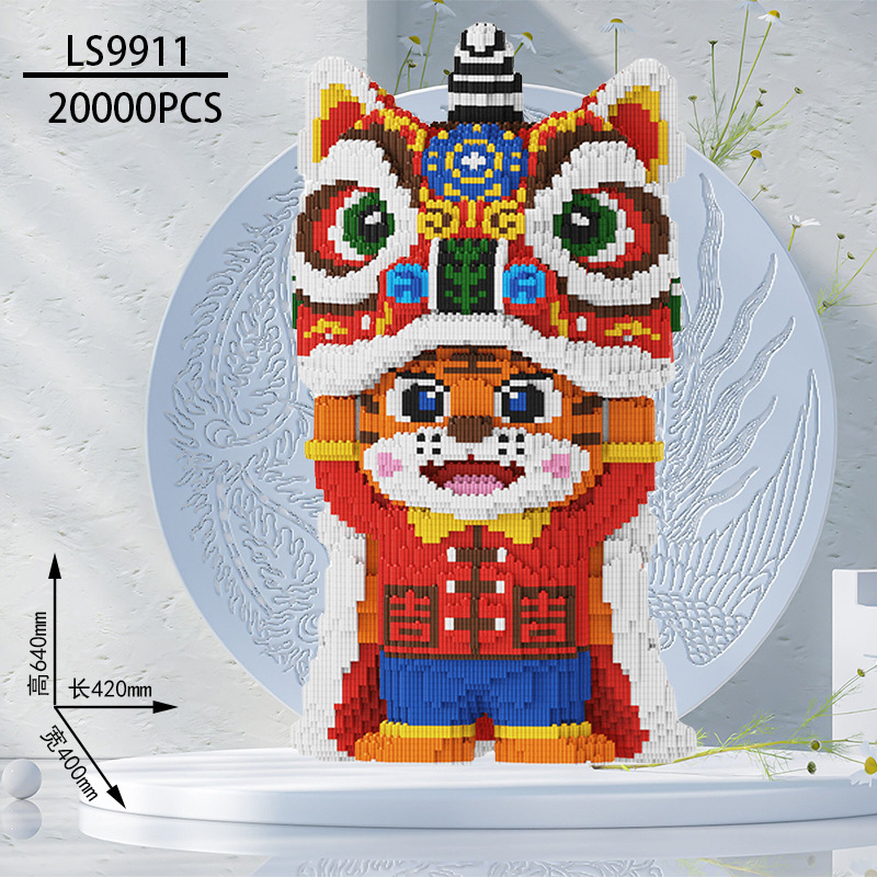 • 거대한 64CM 사자춤과 호랑이 + 무료 빌딩 블록 망치