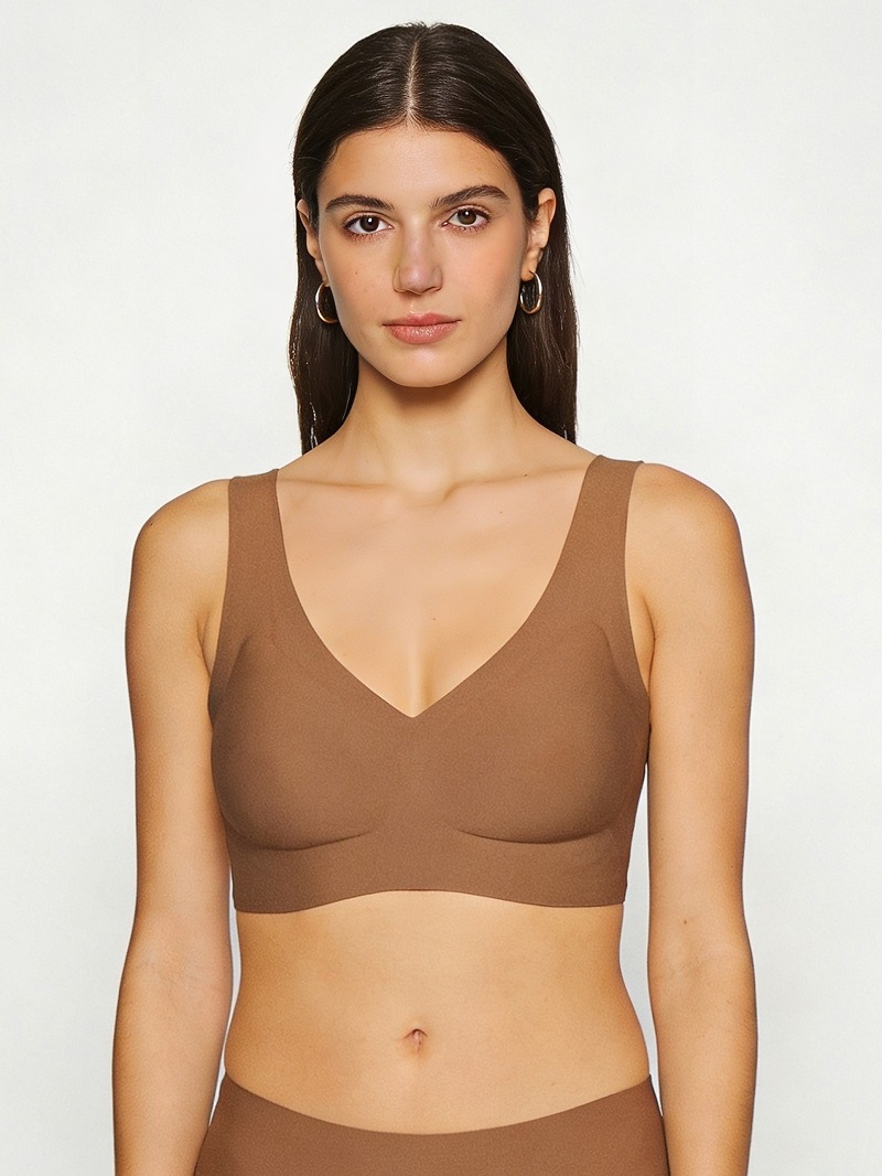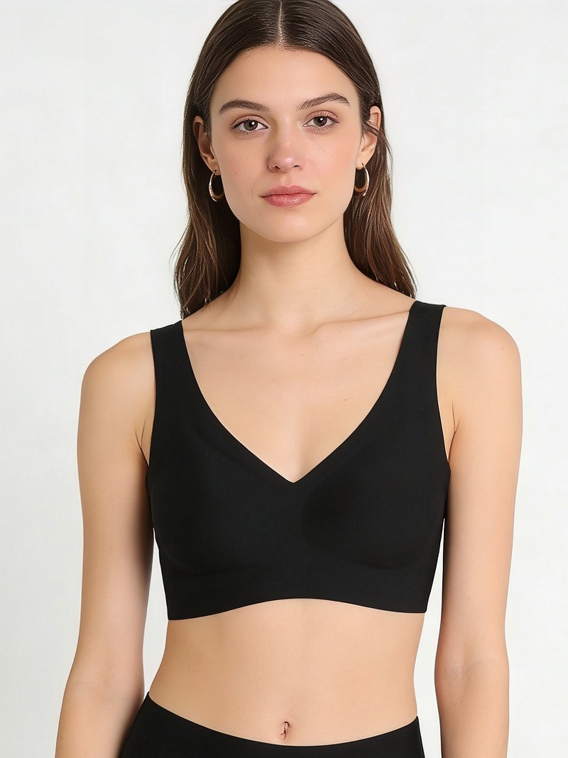 여성용 무봉제 V넥 조끼형 속옷, 큰 가슴을 작아 보이게 하는 편안한 브라, U자형 아름다운 등 브라