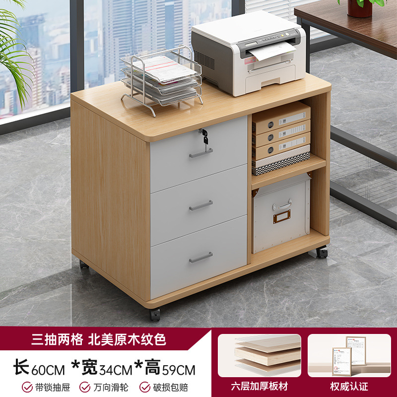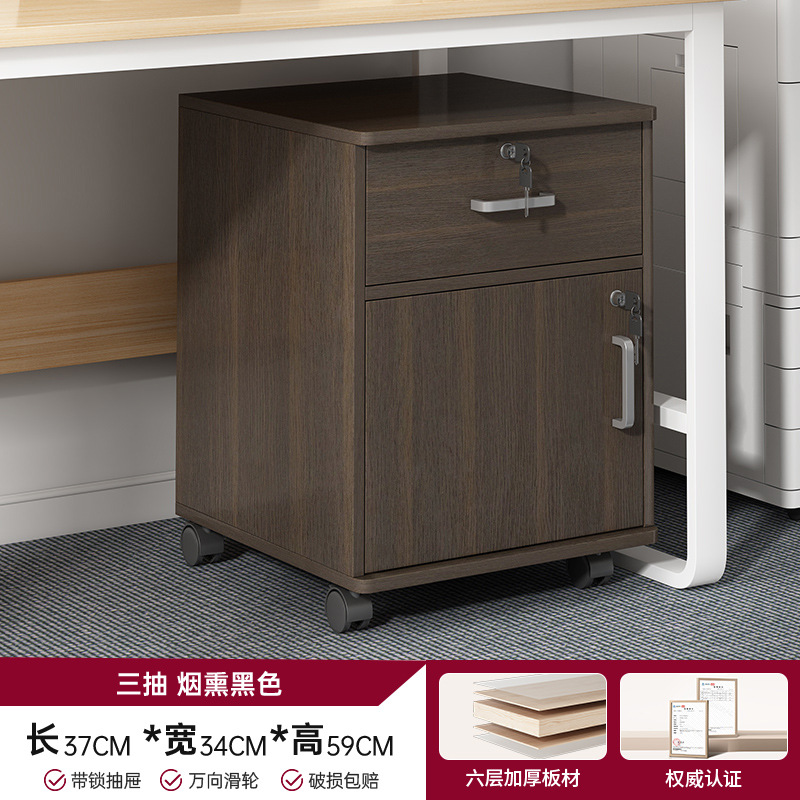 • 【3단 서랍 2칸 잠금장치 및 바퀴 포함】북미산 원목 무늬 60*34*59cm