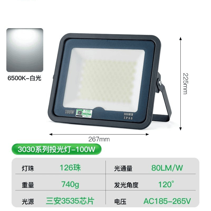 • 대형 발광 표면-100W(Yaming 통합 COB)