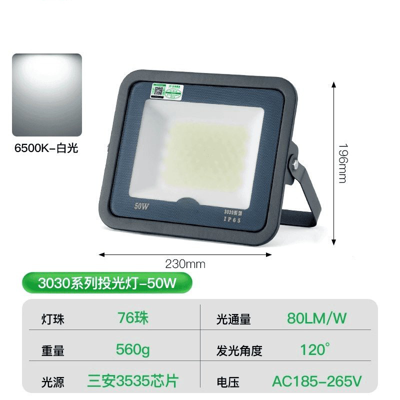 • 대형 발광 표면-50W(Yaming 통합 COB)