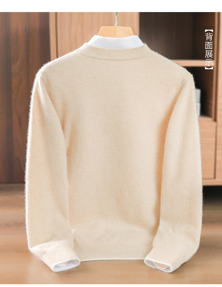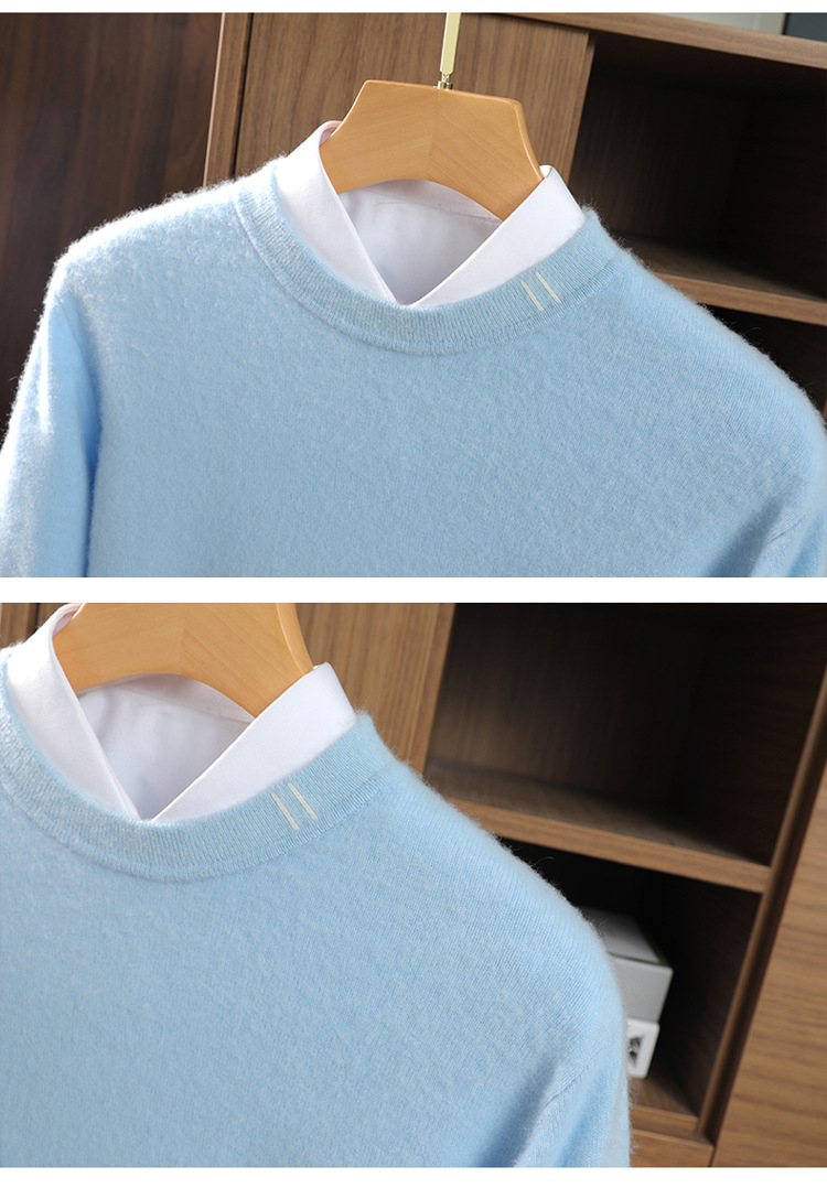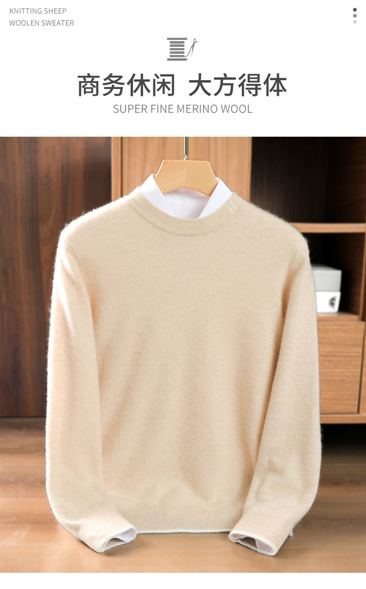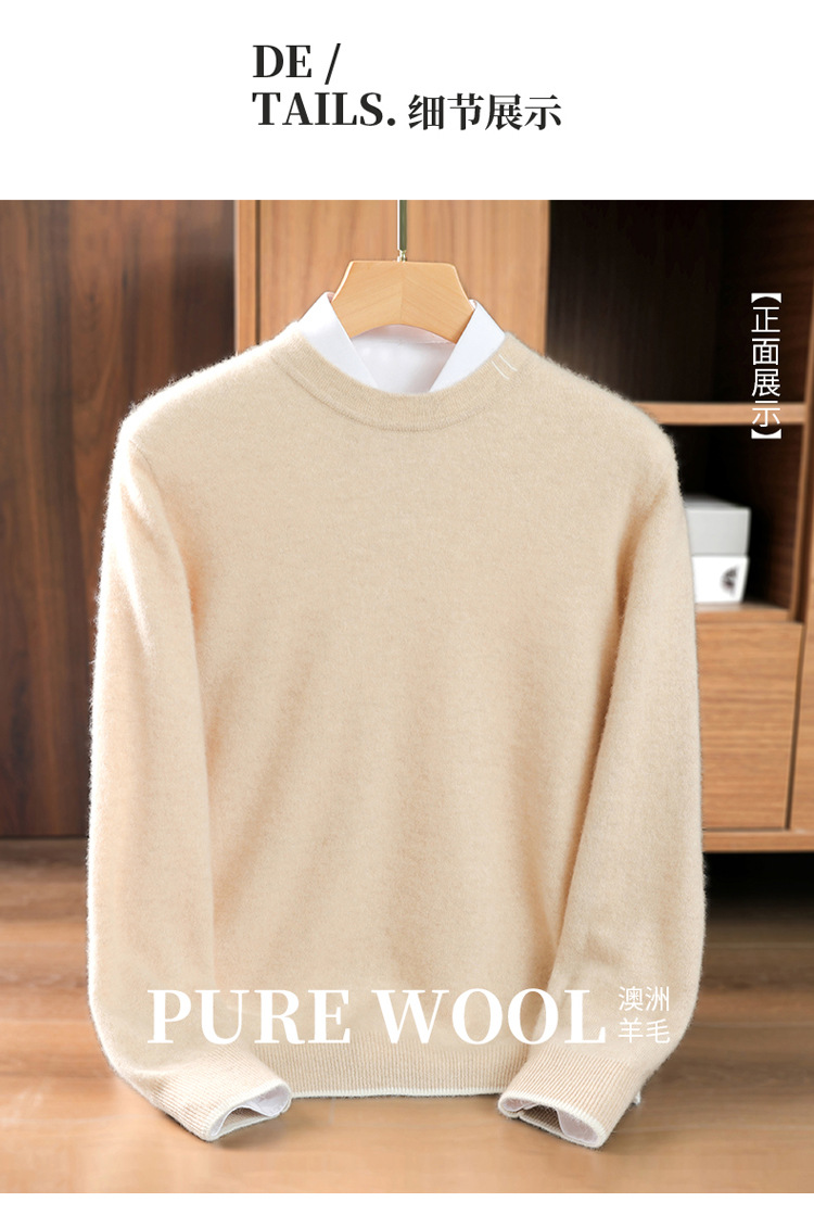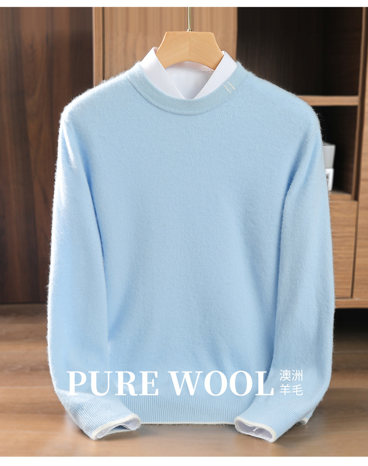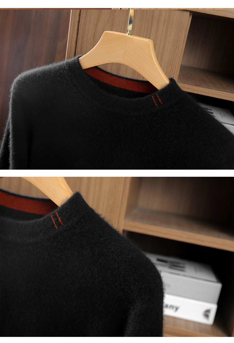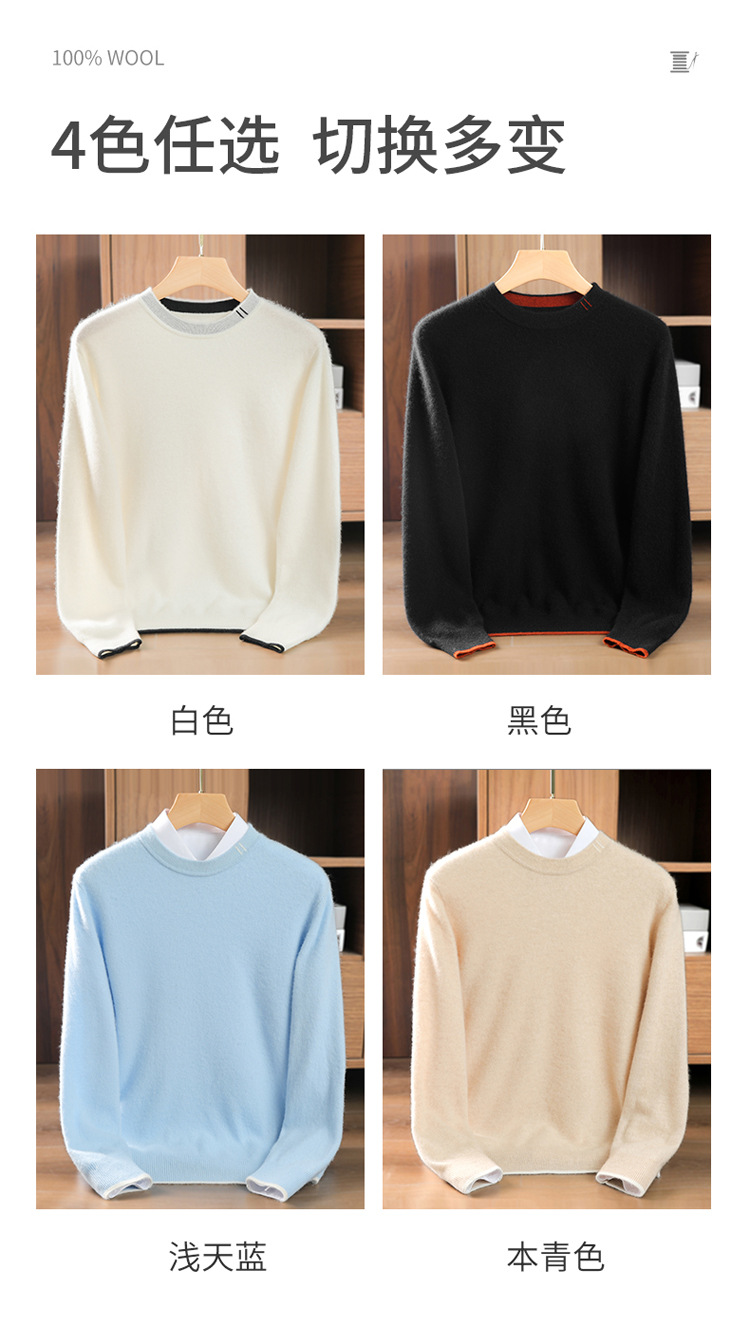남성용 한국식 콘트라스트 컬러 라운드 넥 풀 울 스웨터 비즈니스 캐주얼 가을과 겨울 새로운 젊고 중년의 풀오버 기반스토어 가기