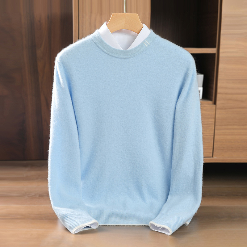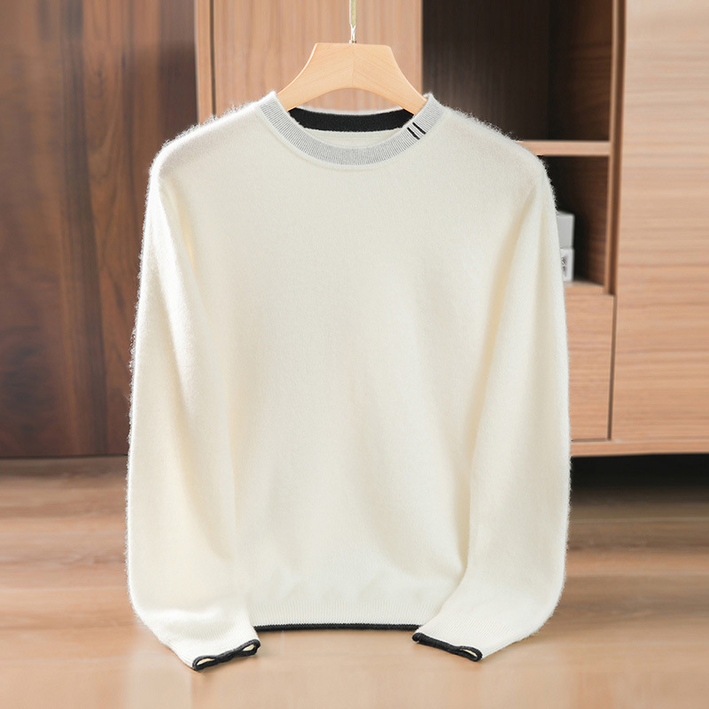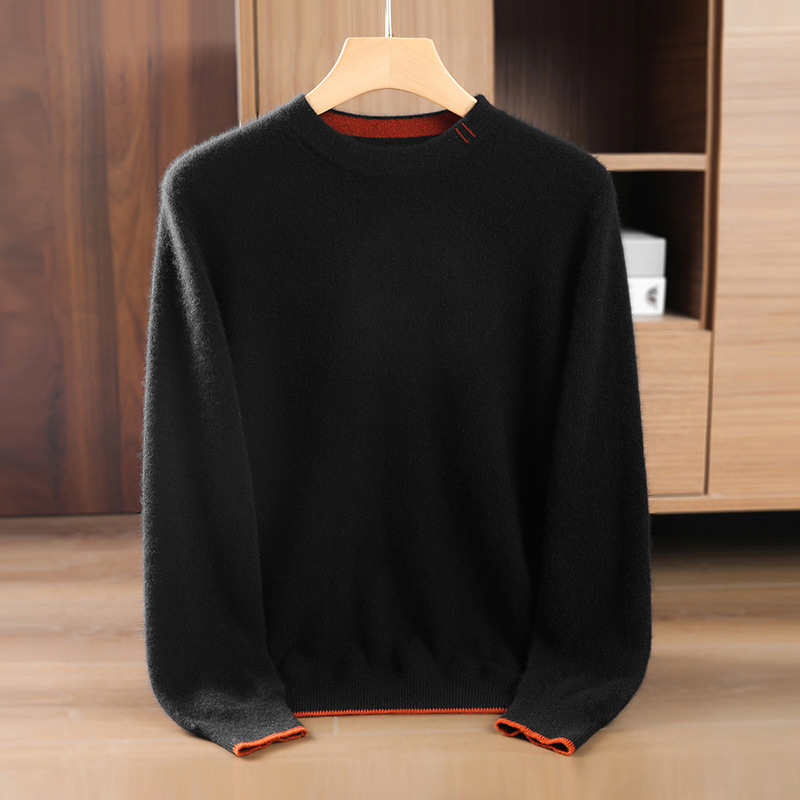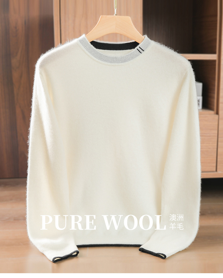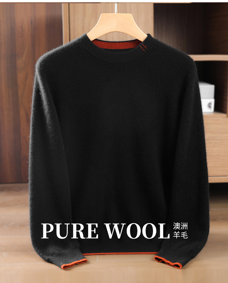 남성용 한국식 콘트라스트 컬러 라운드 넥 풀 울 스웨터 비즈니스 캐주얼 가을과 겨울 새로운 젊고 중년의 풀오버 기반