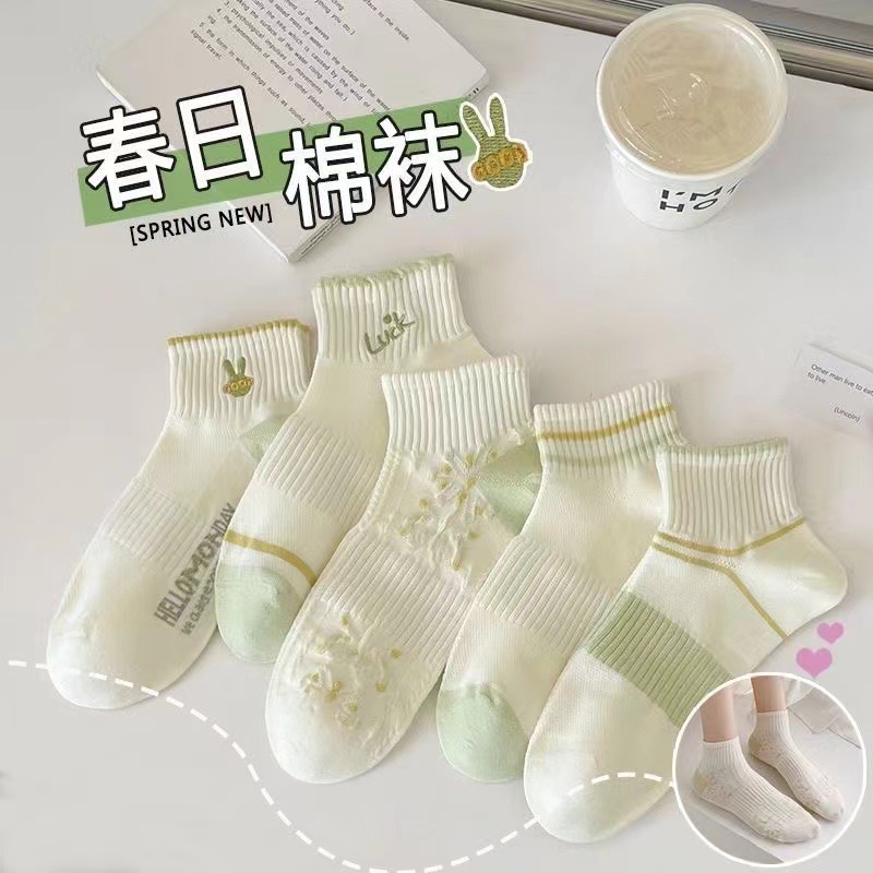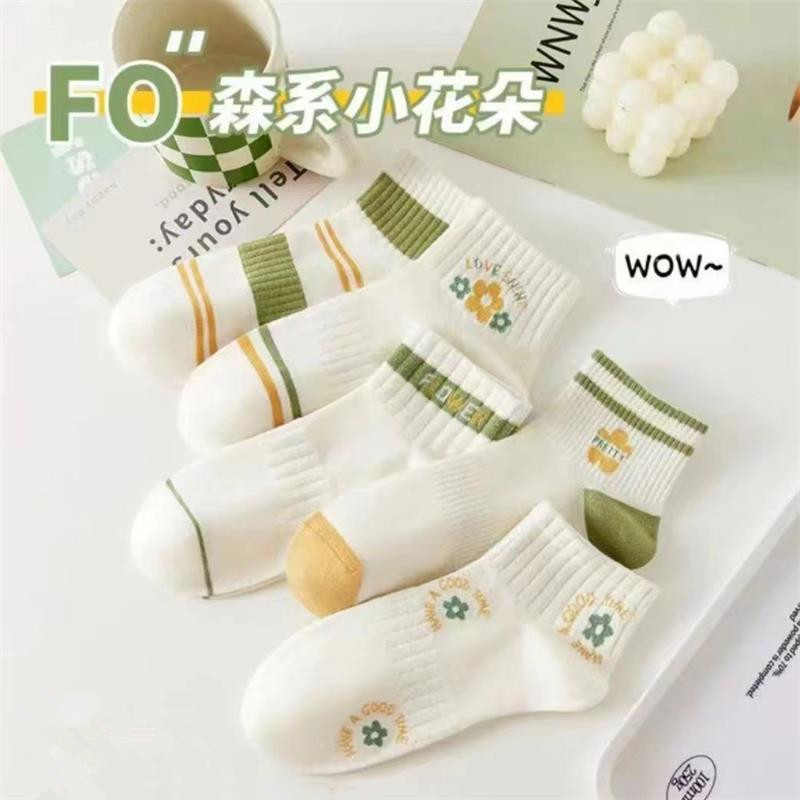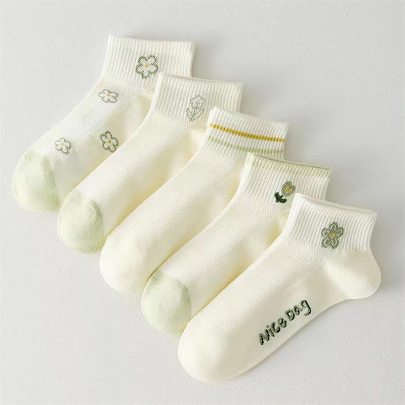 • 녹색 꽃무늬 여성용 양말(10켤레/팩, 5색 혼합)