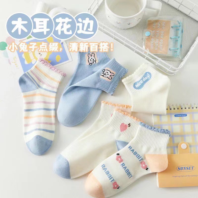 • 여성용 보트 양말 과일 그린 토끼 (10켤레/팩 5색 혼합)
