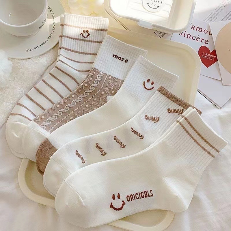 • 여성용 미드기장 웃는 얼굴 (10쌍/팩 5색 혼합)