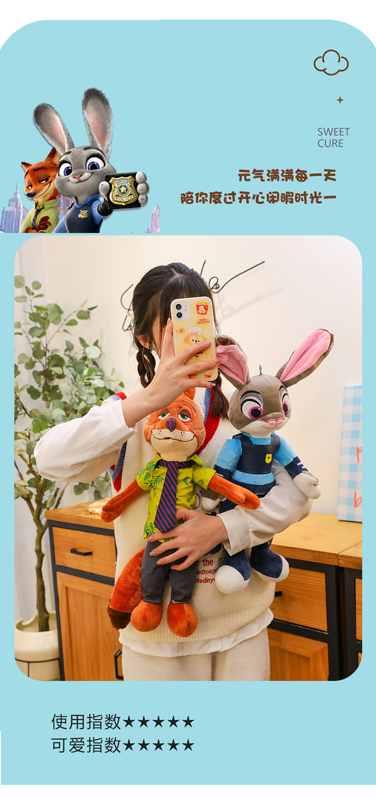외국 무역용 짐승도시 봉제인형, 여우 닉, 토끼 주디, 선물용, 웨딩 파티용 인형스토어 가기